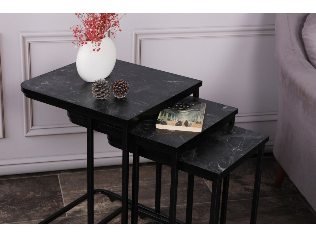 Set konferenčních stolků CE černý mramor