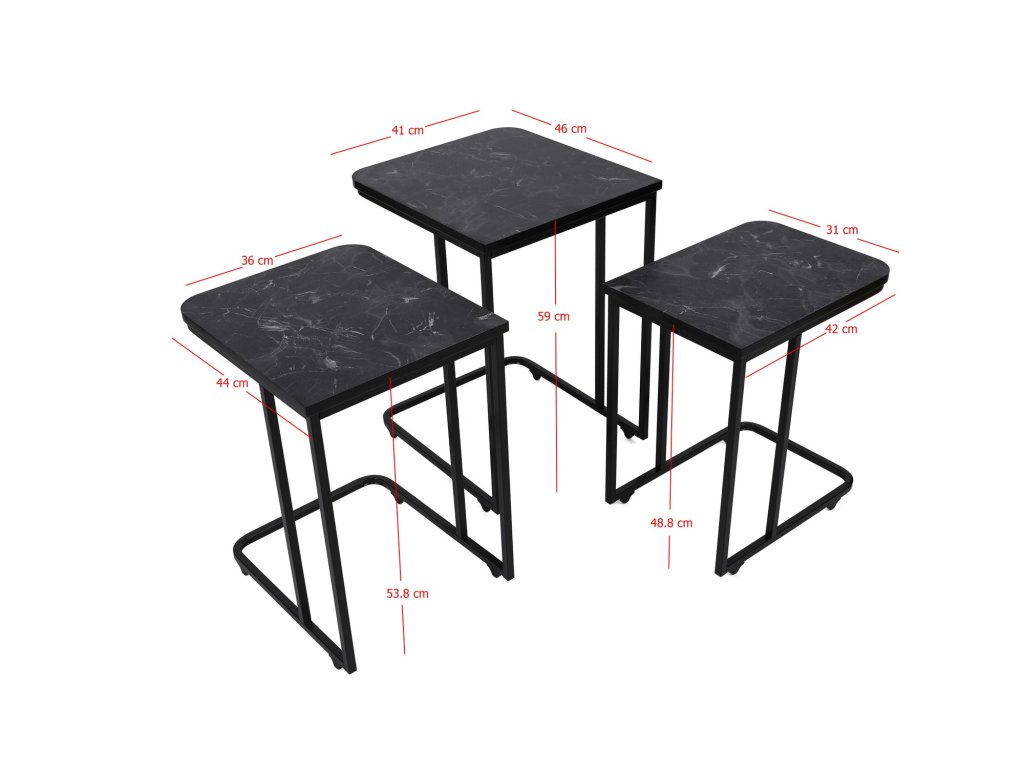 Rozměry nejmenšího stolku: Šířka: 41 cm Hloubka: 46 cm Výška: 48,8 cm (1 kus)