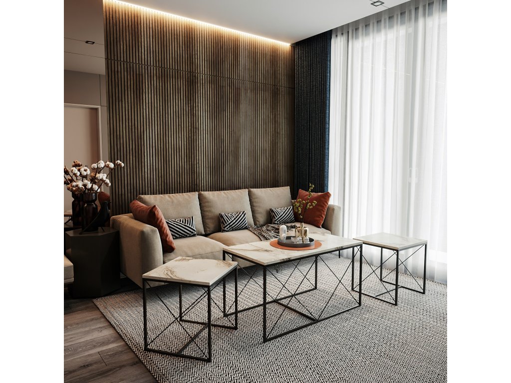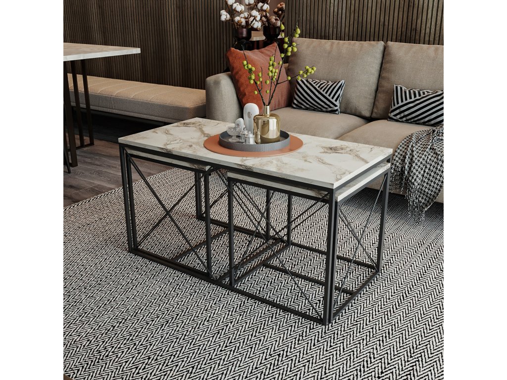 Set konferenčních stolků DEFNE bílý mramor a černá