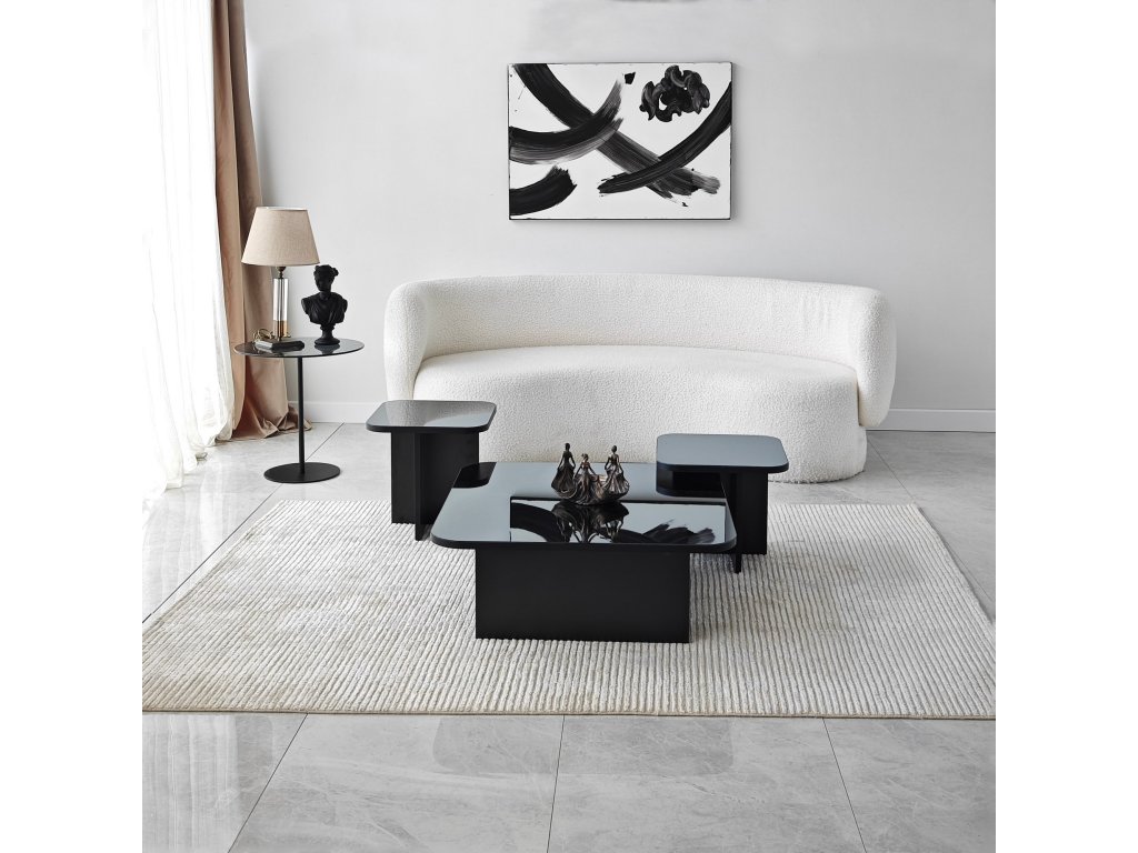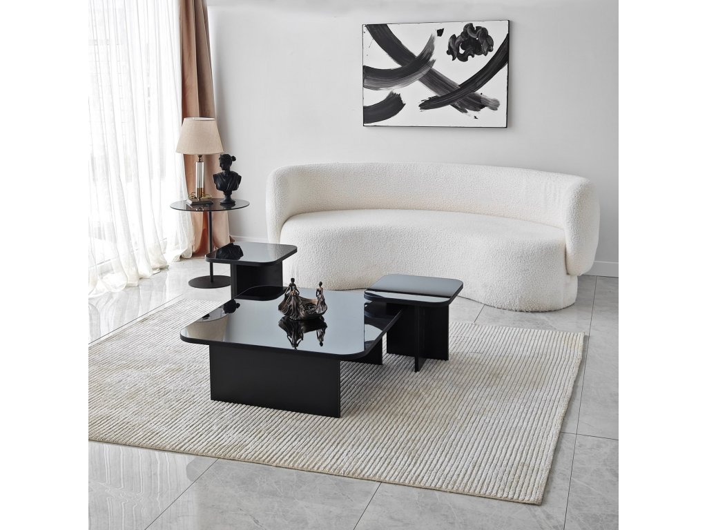 Naše sada konferenčních stolků s elegantním a moderním designem je dokonalým doplňkem každé moderní domácnosti. Její čisté linie a minimalistická estetika bez námahy doplní jakýkoli stávající interiér a zároveň poskytne funkční plochu pro vaše každodenní potřeby.