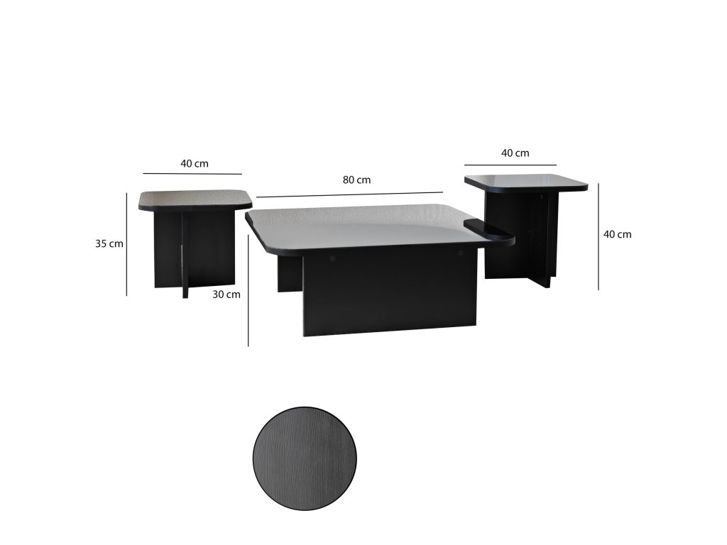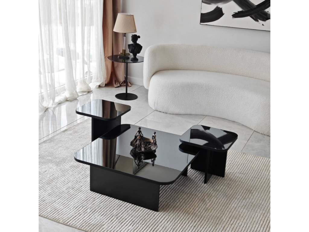 Sada konferenčních stolků je k dispozici v úžasné kombinaci černé a kouřové barvy, což vám umožní vytvořit harmonickou atmosféru ve vašem obytném prostoru. Ať už dáváte přednost odvážnému a dramatickému vzhledu, nebo decentnějšímu a nenápadnějšímu stylu, naše barevné varianty uspokojí váš jedinečný vkus.