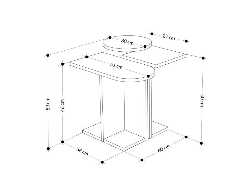 Rozměry středního stolku: Šířka: 30 cm Hloubka: 30 cm Výška: 53 cm (1 kus)