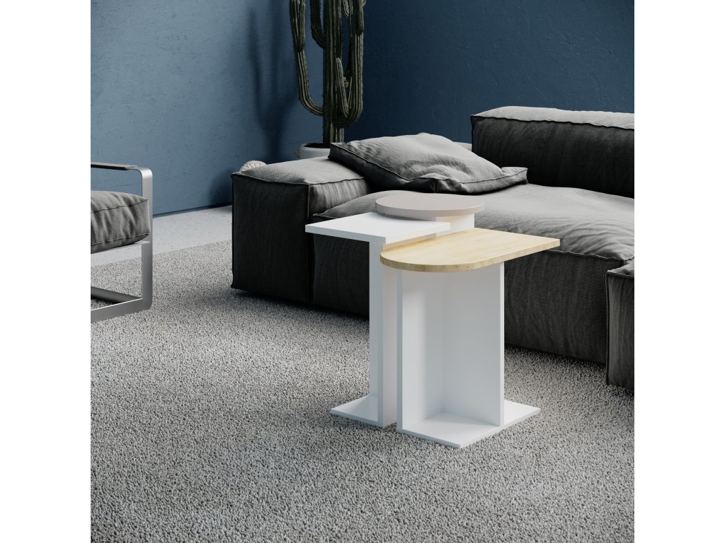 Úžasný set MUND tvoří tři konferenční stolky se obdobným tělem, a barevně i tvarově rozdílnými deskami a můžete je složit těsně k sobě, anebo může sloužit každý zvlášť.