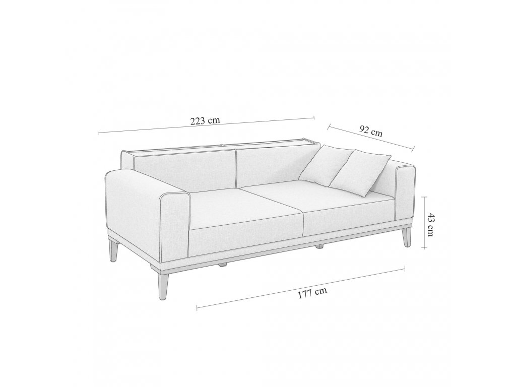 Rozměry: šířka: 223 cm výška: 82 cm hloubka: 94 cm hloubka sedu: 59 cm výška sedu: 43 cm