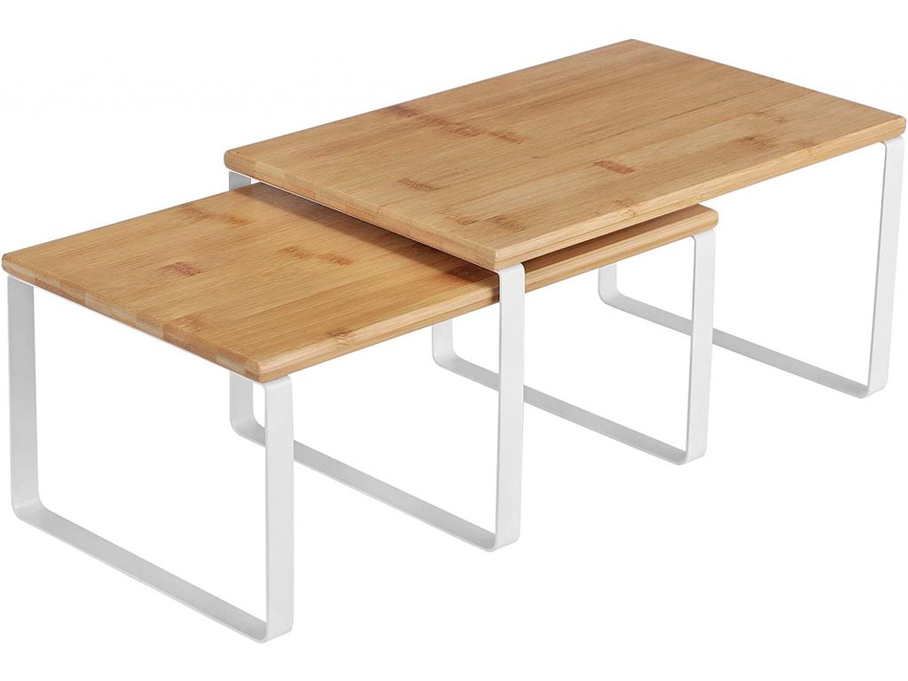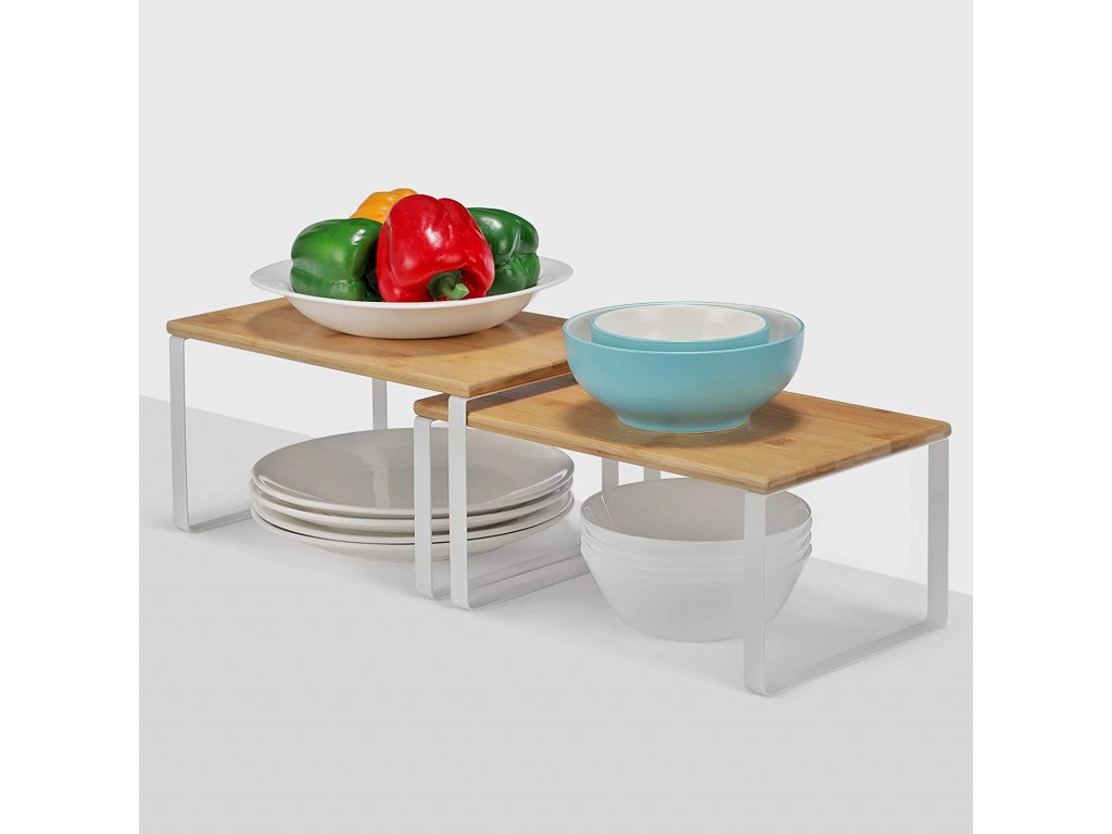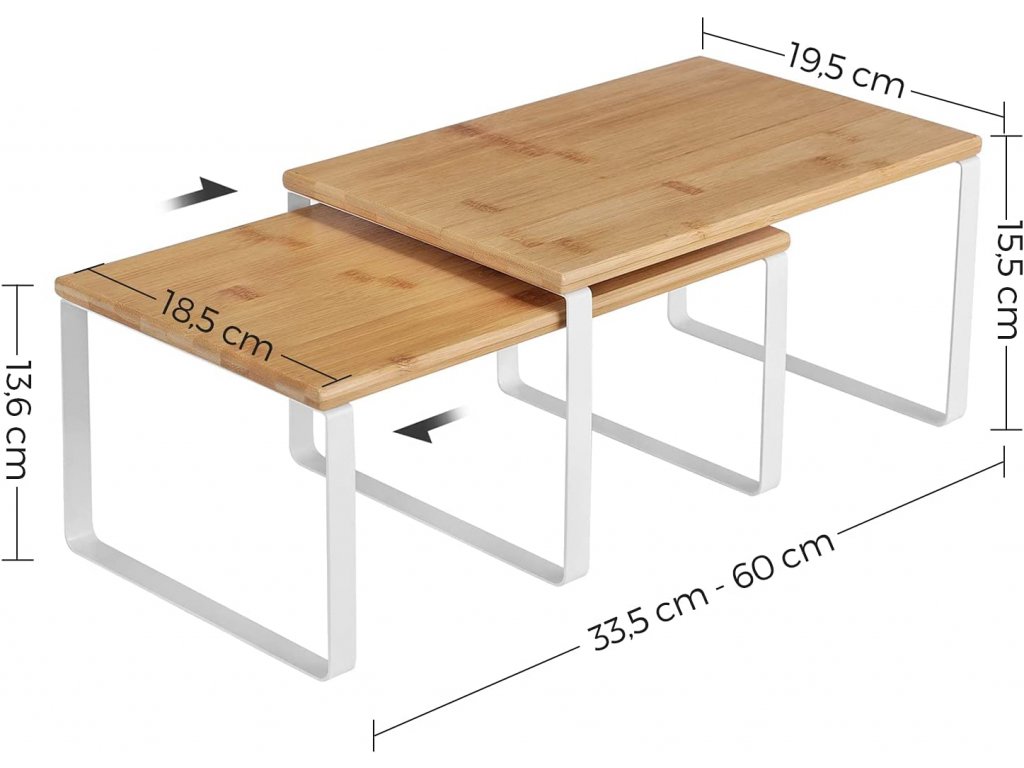 Sada 2 robustních kuchyňských polic se stohovatelnou a rozšiřitelnou konstrukcí, snadnou montáží a skvělým způsobem, jak zvládnout nepořádek a vkusně vylepšit vaši kuchyni.