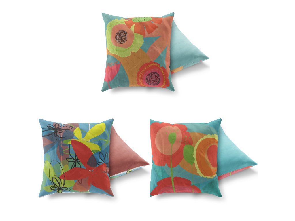 Set povlaků na polštář AC-4528-4509-4512 tyrkysový s rostlinami