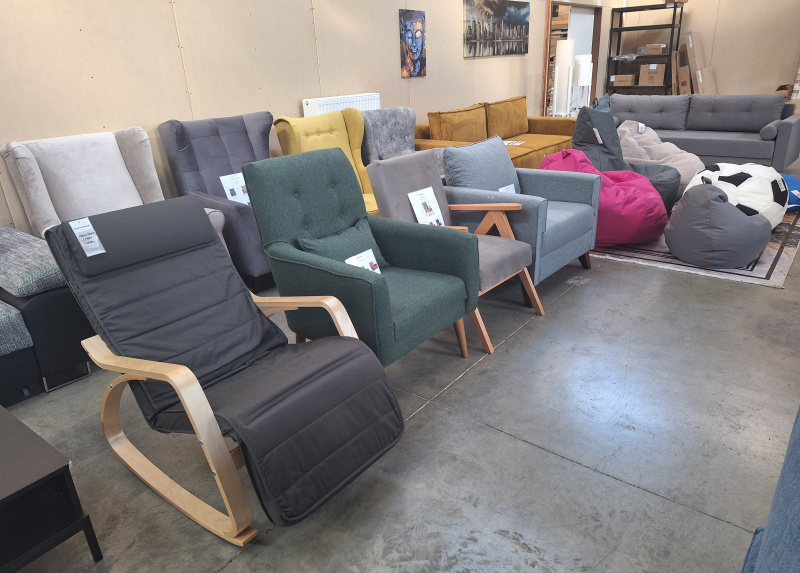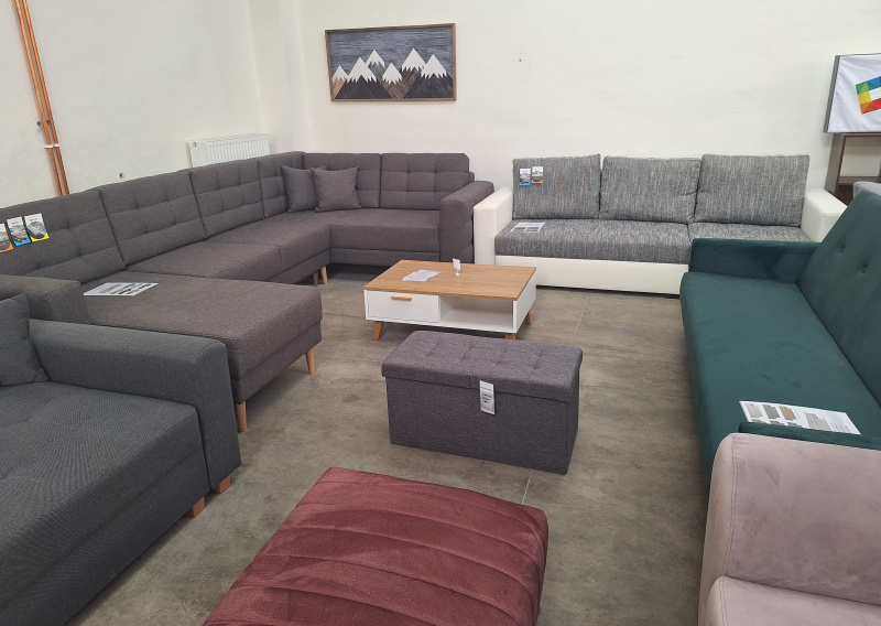 Na showroomu si můžete vyzkoušet a prohlédnout některé sedací soupravy, křesla a postele z naší nabídky. Naleznete zde i mnoho taburetů.