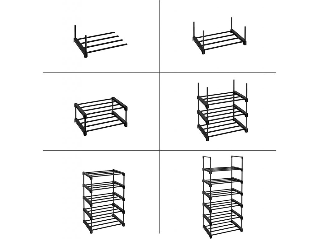 K montáži nepotřebujete žádné nářadí, stačí jen zasunout železné trubky do kvalitních plastových spojů. Hotovo! Ihned můžete začít ukládat své pantofle, tenisky, vysoké podpatky, sandály i baletní lodičky.