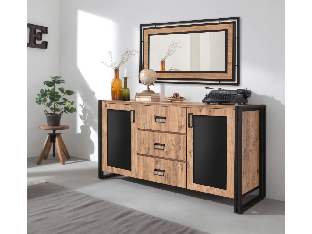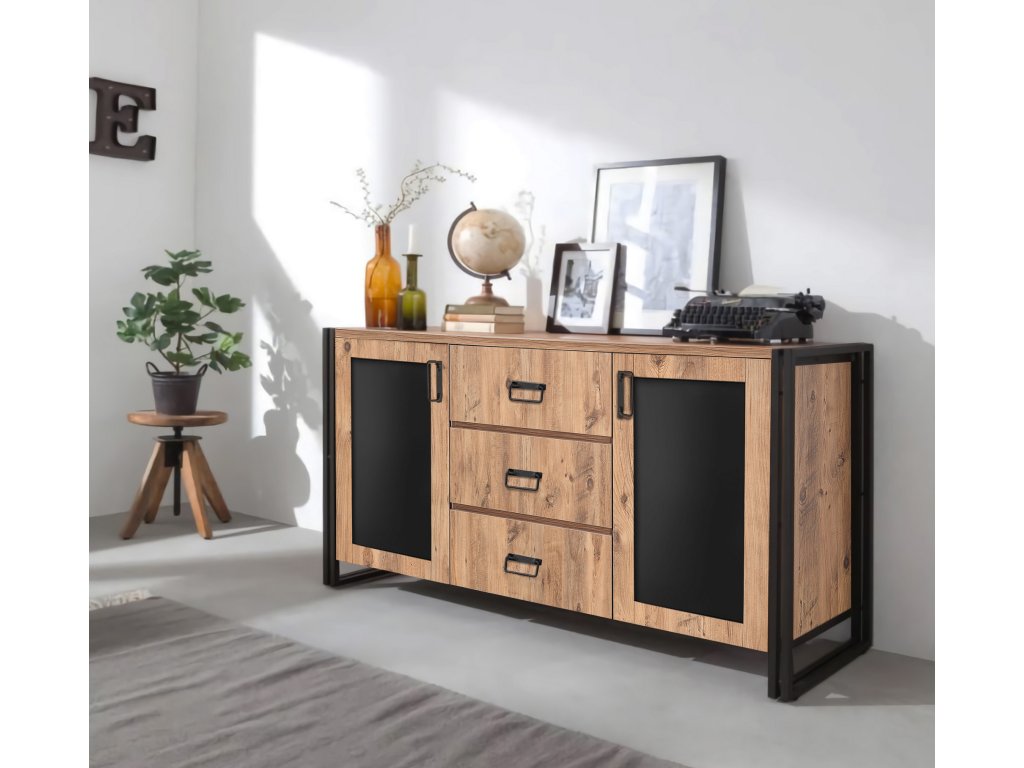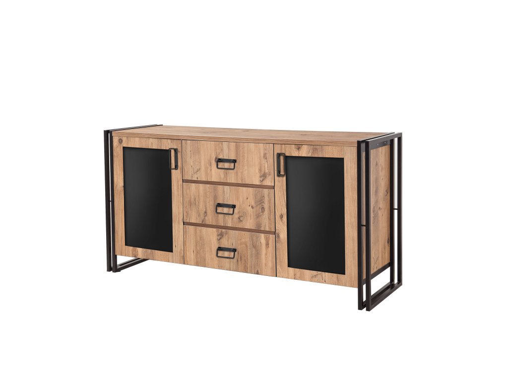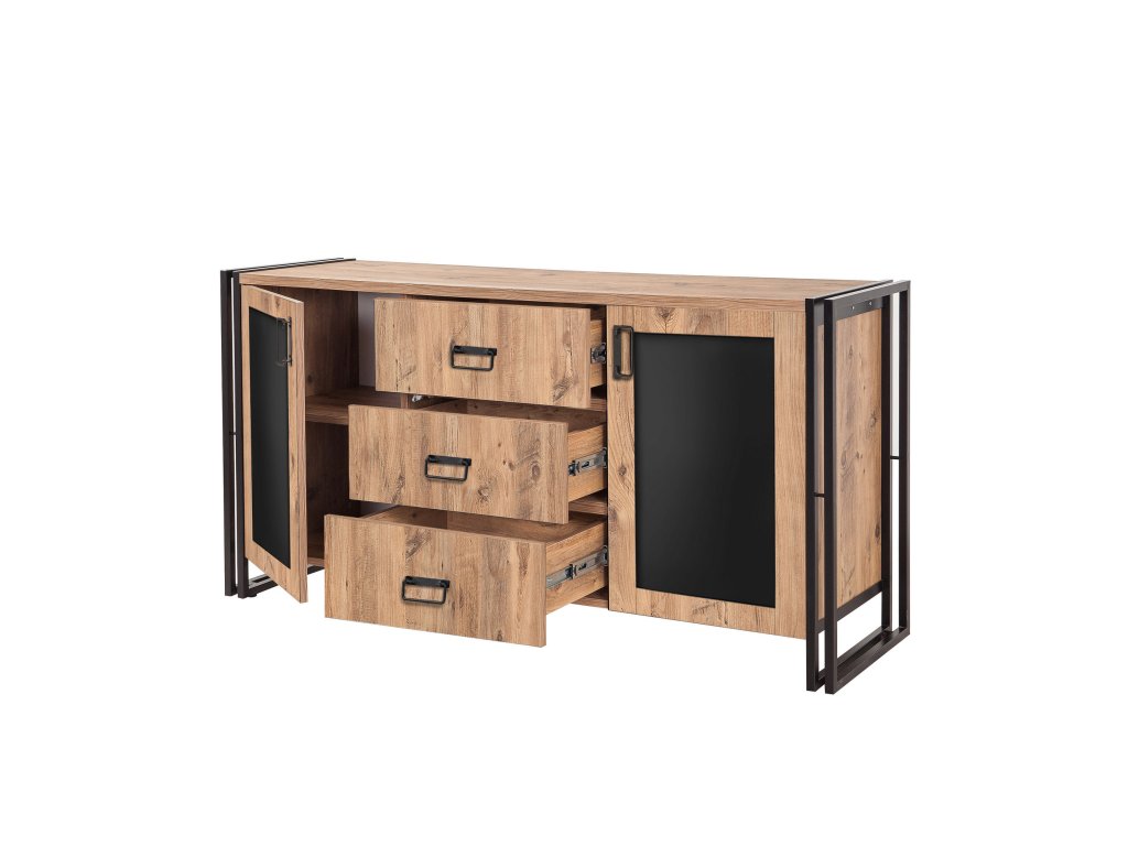 Černé prvky a kovové úchyty dělají z této skříňky velice výrazný kousek nábytku.