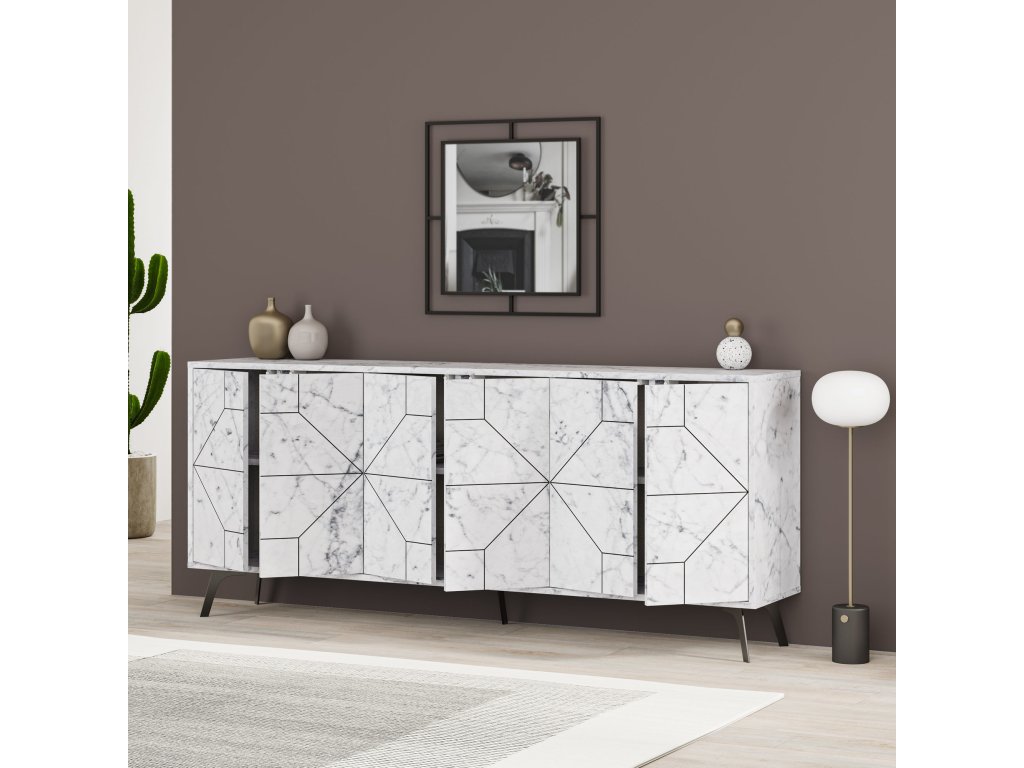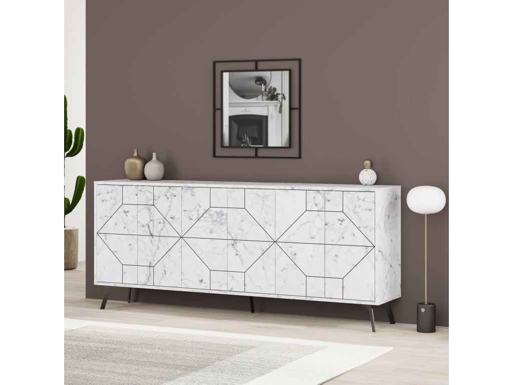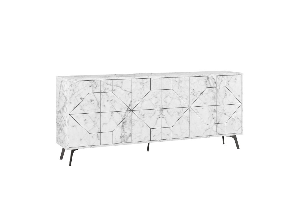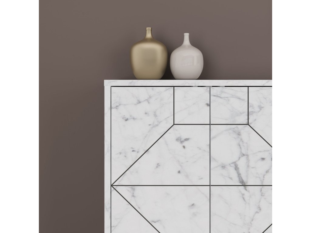Je vyrobena z 18 mm silných desek pokrytých 100 % melaminem v dekoru bílého mramoru.