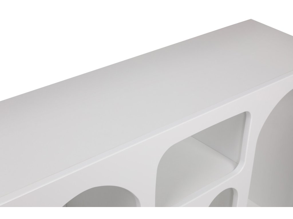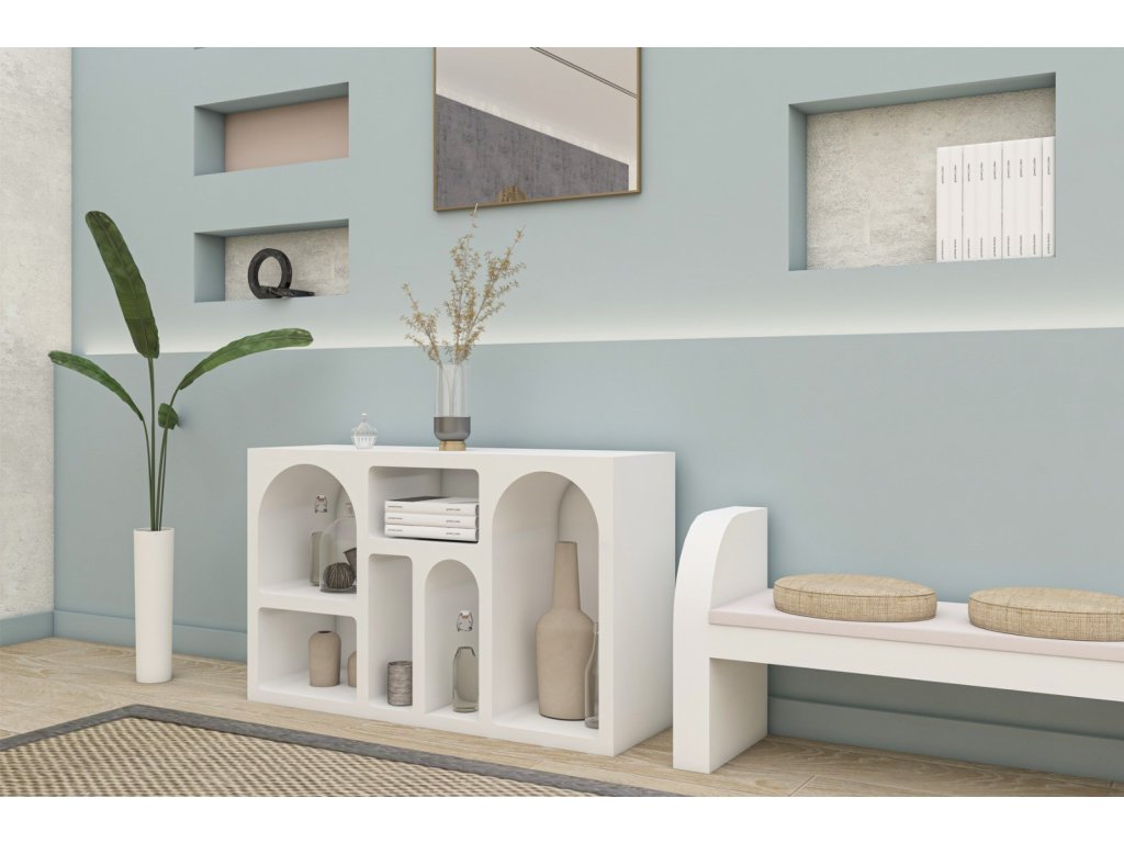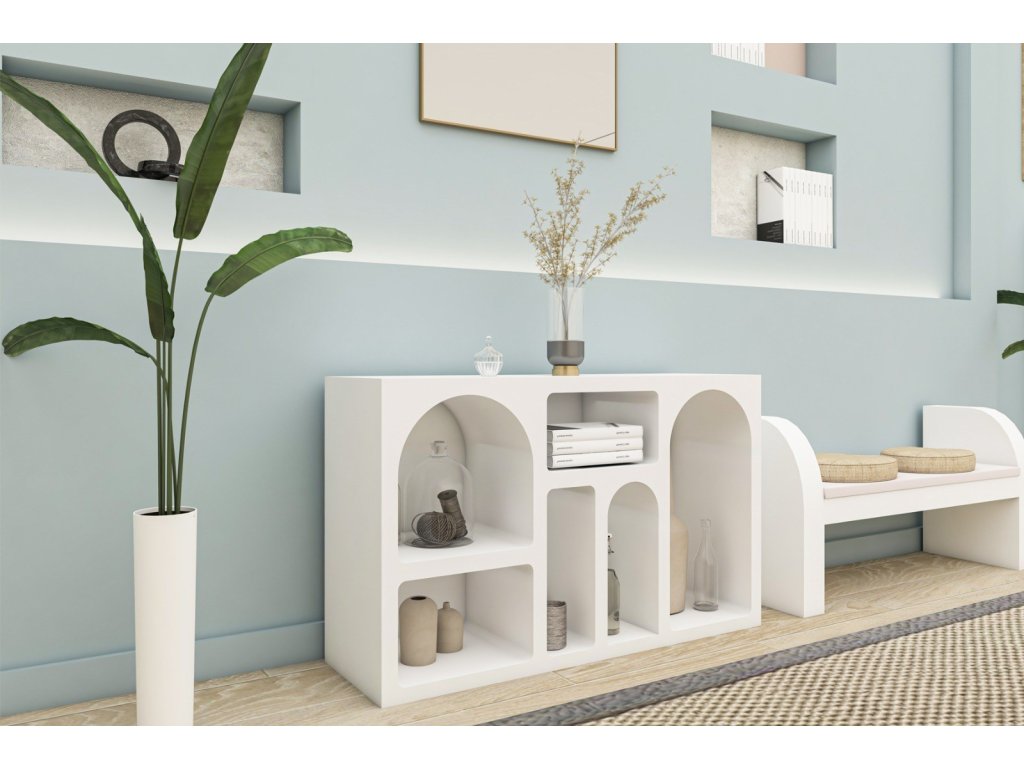 Díky svému elegantnímu a modernímu designu vyzařuje tato konzola eleganci a sofistikovanost, takže se stane dokonalým doplňkem vašeho domácího interiéru. Svěží bílá barva dodává nádech čistoty a klidu a vytváří uklidňující atmosféru, která okamžitě povznese váš prostor.