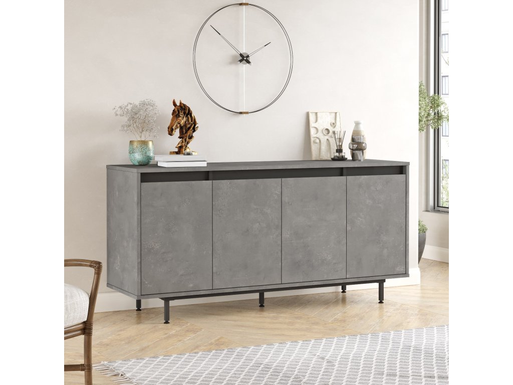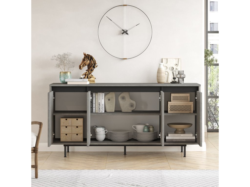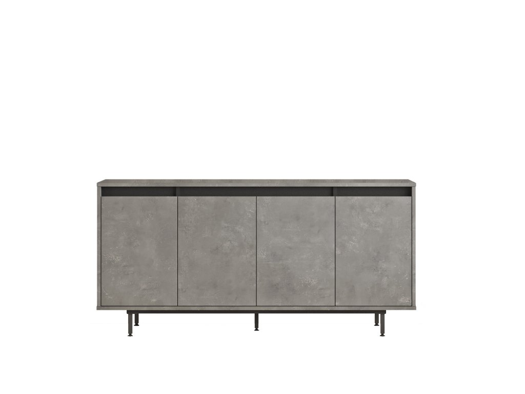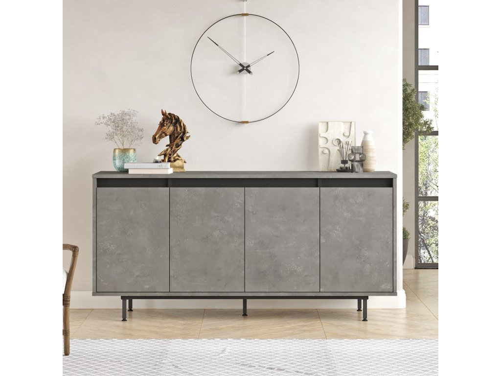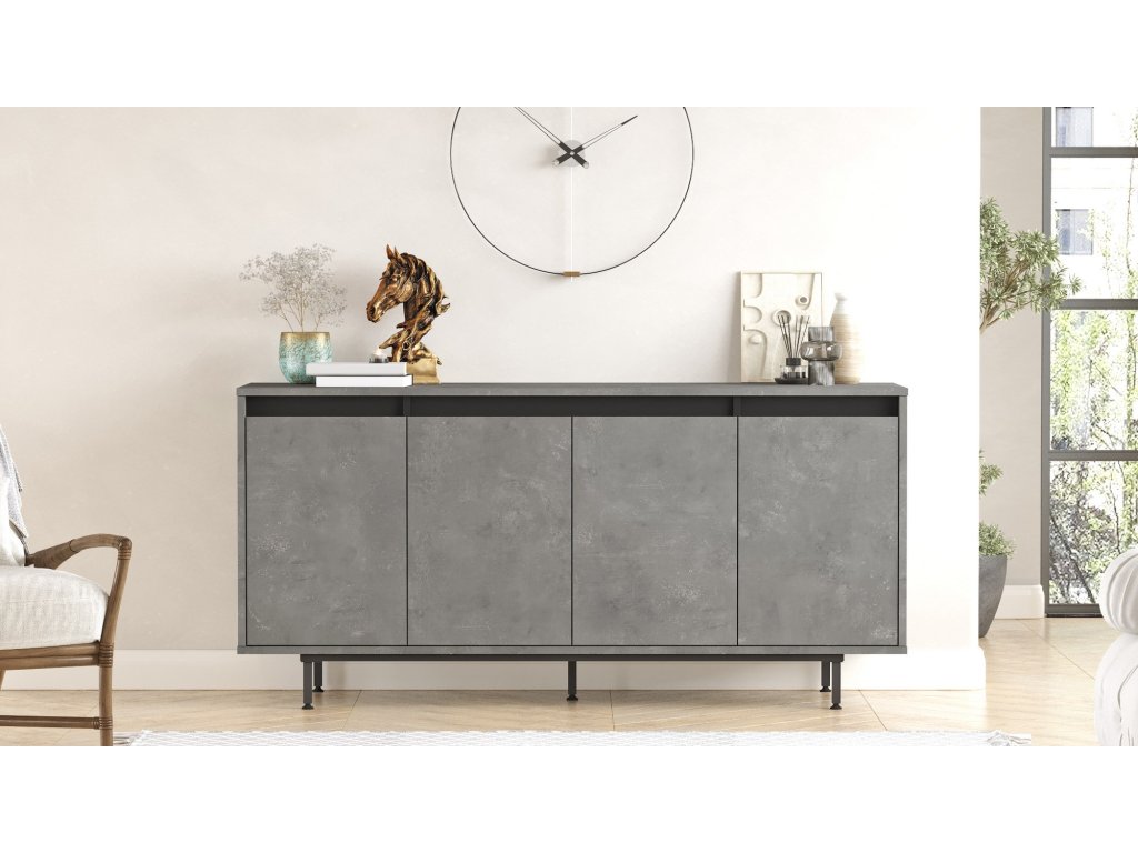 Je vyrobená z kovových nohou a z 18 mm silných desek pokrytých 100 % melaminem v šedé a černé barvě.