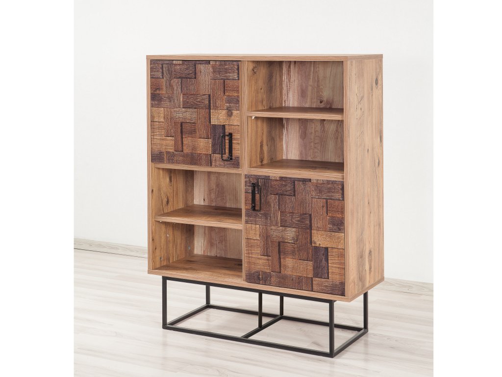 Skříňka je vyrobena z 18mm silných desek pokrytých 100% melaminem v dekoru borovice antlantic a stojí na obdélníkovém 22 cm vysokém černém kovovém rámu šířky 1,5 cm.