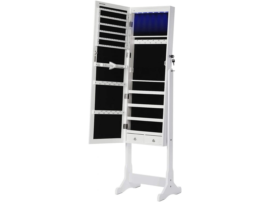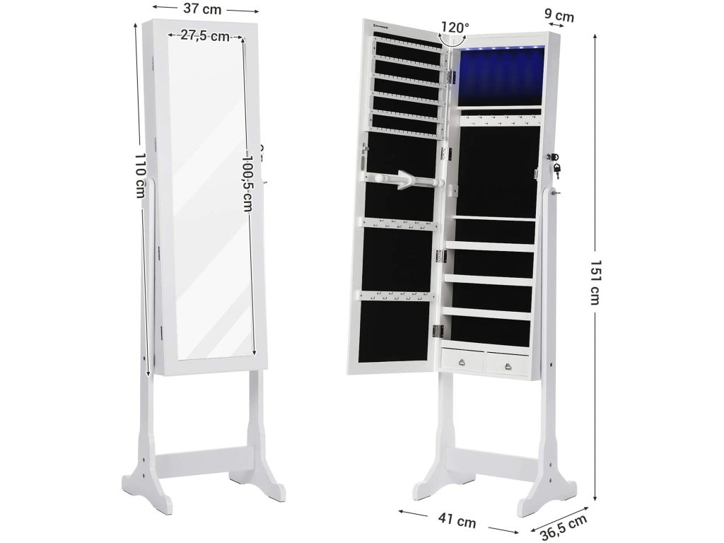 Šperkovnice se zrcadlem volně stojící bílá 41 x 151 cm