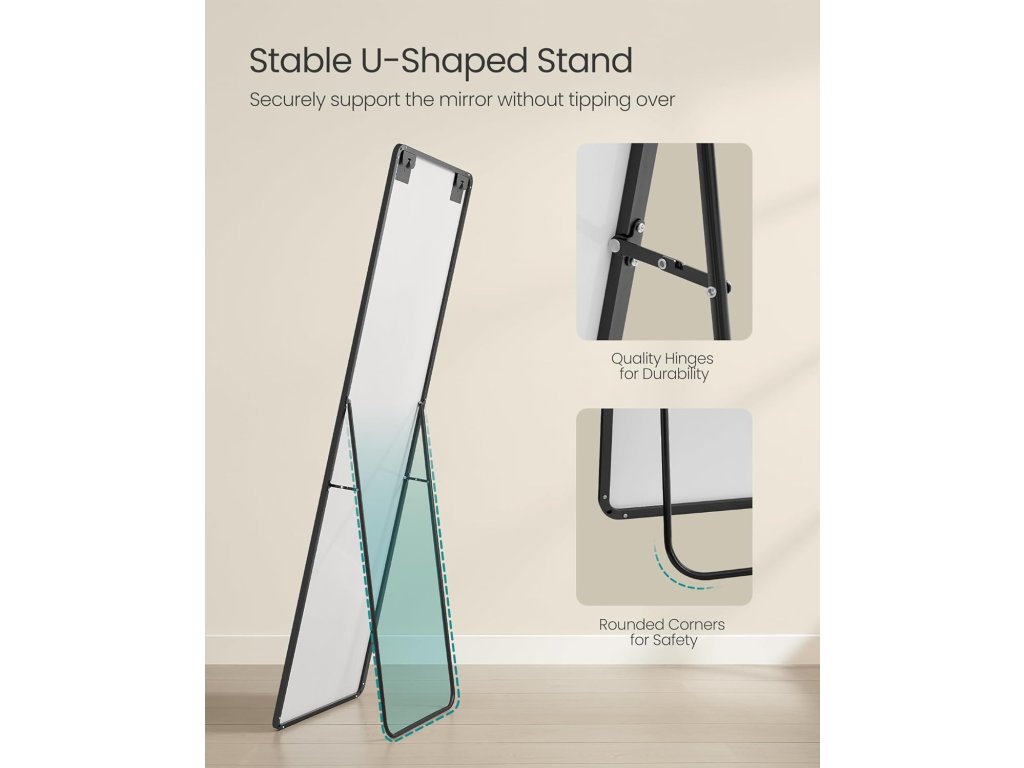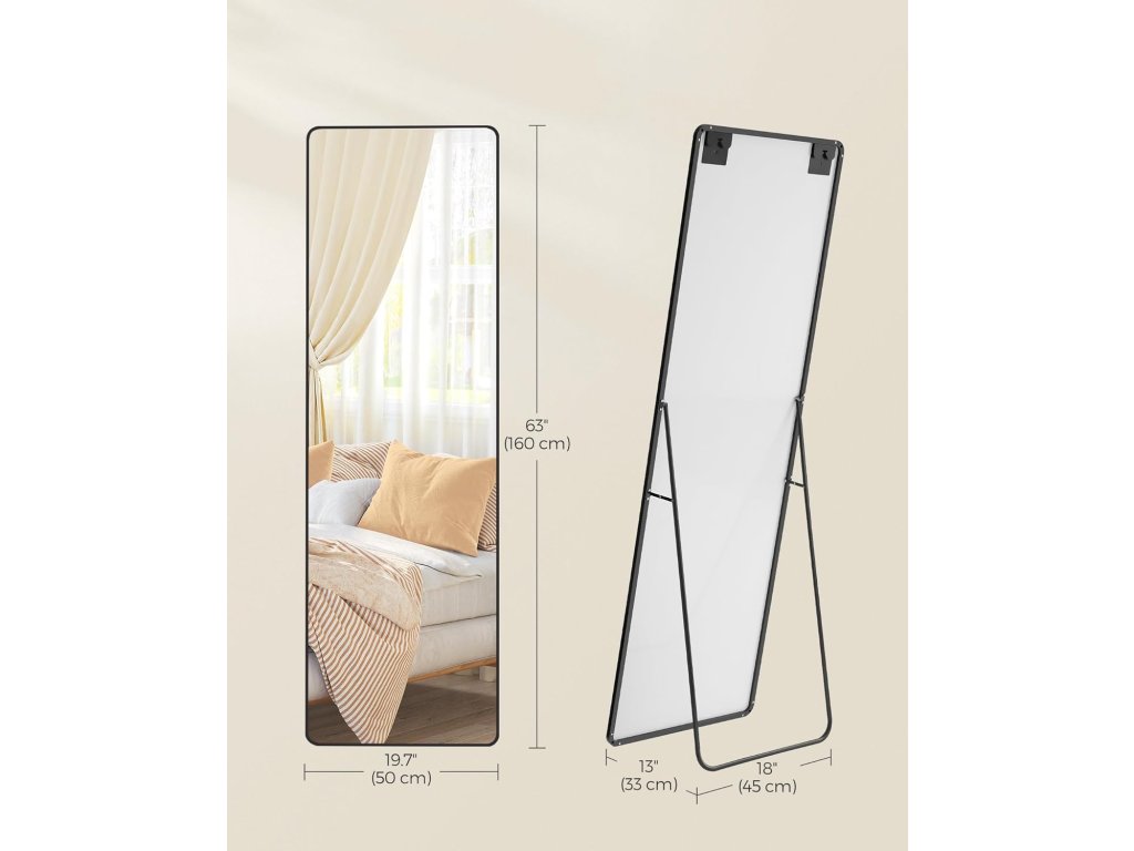 Toto zrcadlo v plné délce je připraveno k použití ihned po vybalení a nevyžaduje žádnou montáž. Díky lehkému rámu jej lze snadno přemístit a umístit na jakékoli požadované místo ve vaší domácnosti.