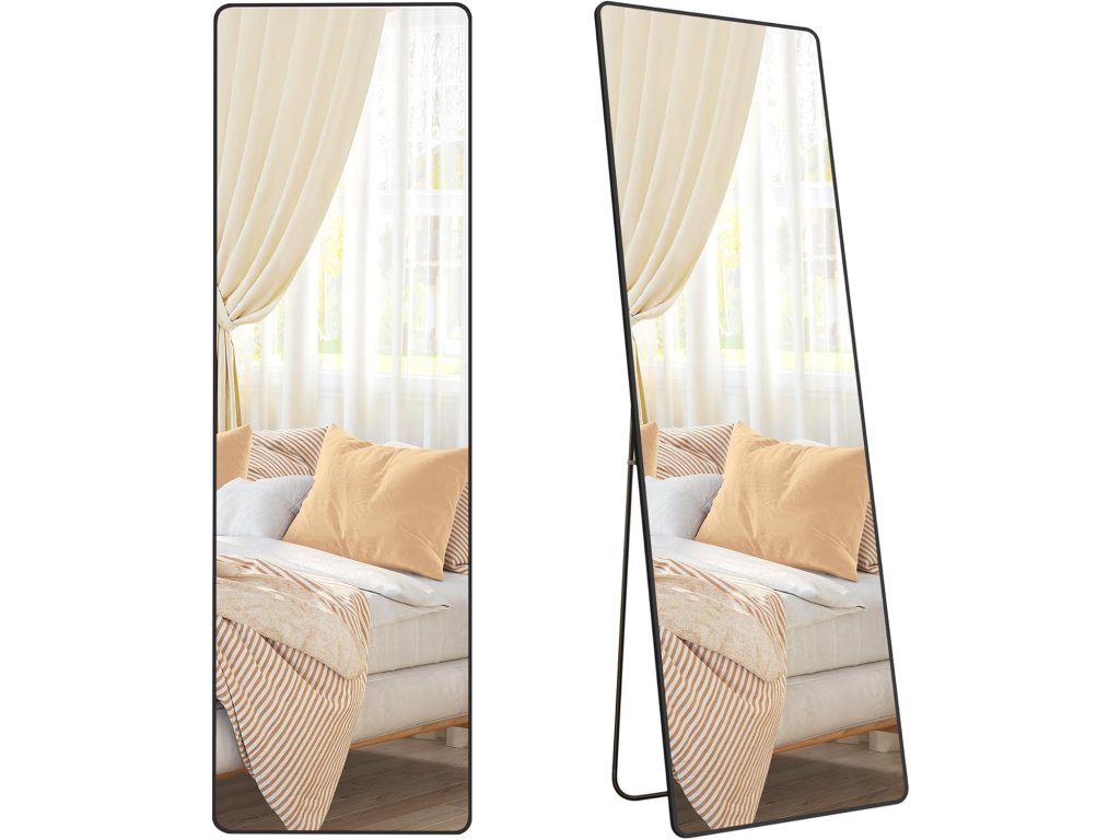 Stojací zrcadlo hliníkový rám 160 x 50 cm černá