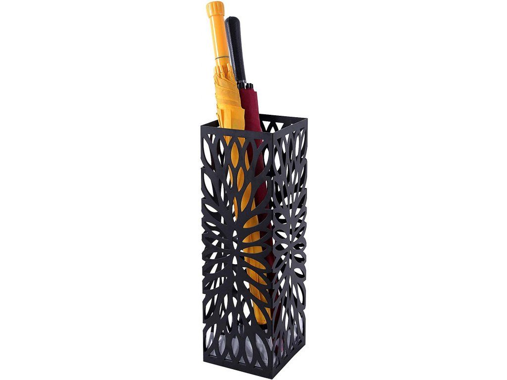 Stojan na deštníky čtvercový černý motiv květy