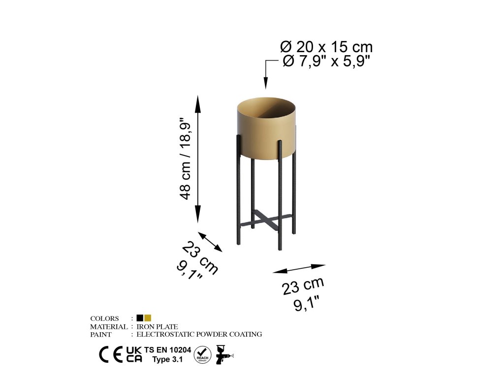 Tento dekorativní květináč je vyroben ze 100% kovu a tudíž vydrží dlouho. Jeho robustní konstrukce zaručuje, že odolá zkoušce časem a umožní vám těšit se z jeho krásy po dlouhá léta. Kombinace černé a zlaté barvy dodává květináči luxusní a opulentní dojem, takže je dokonalým doplňkem každého interiéru.