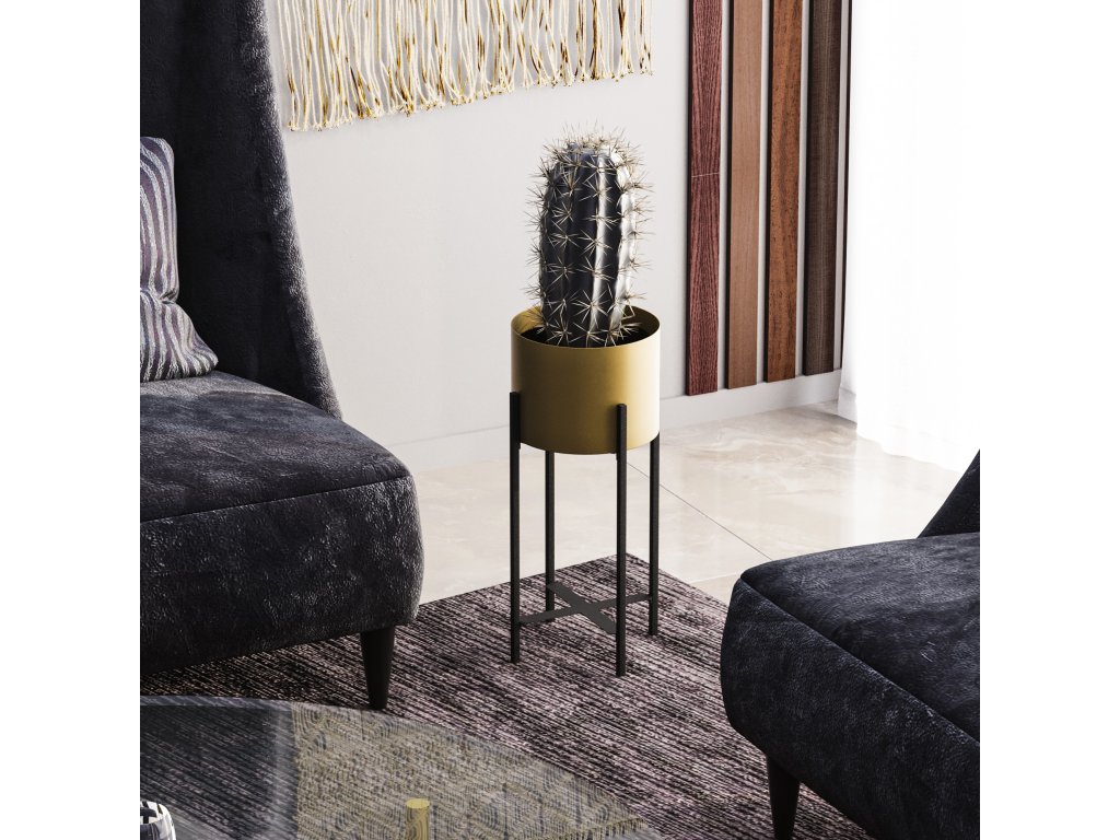 Stojan na květináč GED-026 na nožičkách, černý a zlatý