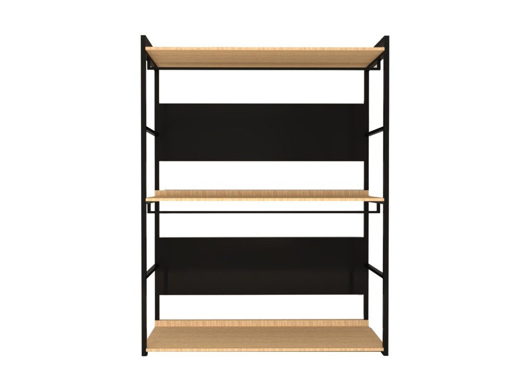 Je vyrobený z ocelového černého elektrostaticky práškově lakovaného rámu, a z MDF desek pokrytých melaminem v dekoru dub.