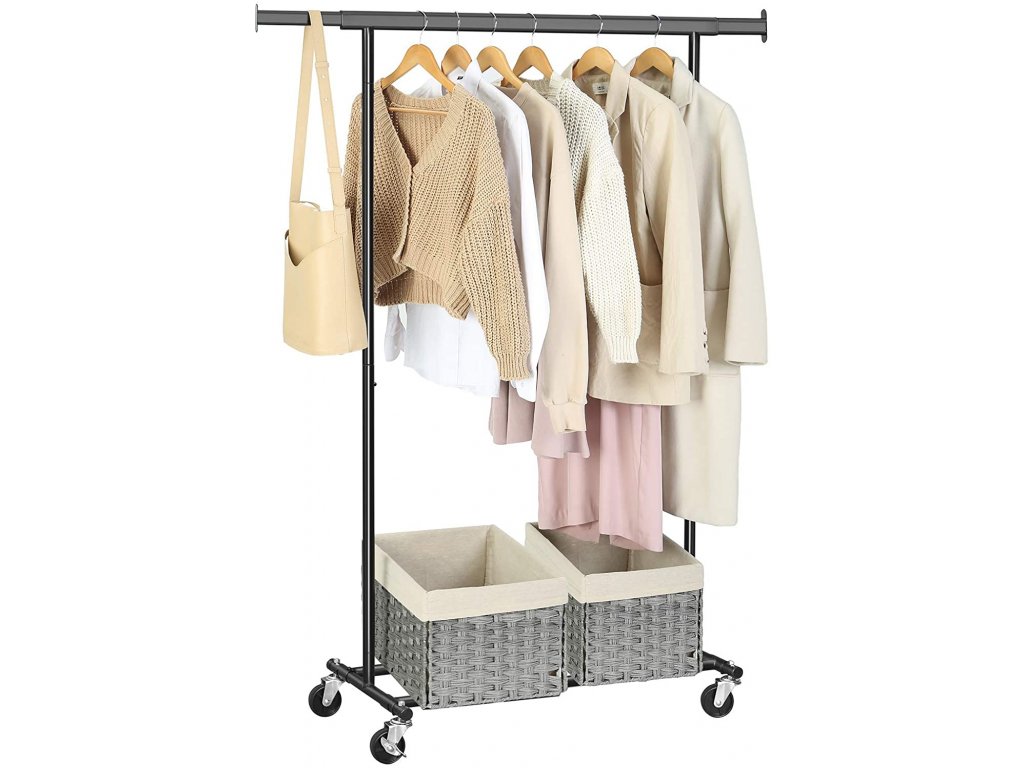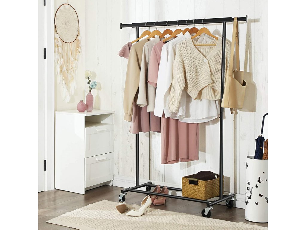 4 kvalitní kolečka vám pomohou snadno přesunout stojan na oděvy kam je třeba. 2 kolečka jsou vybavena brzdami, které jej zafixují na místě.