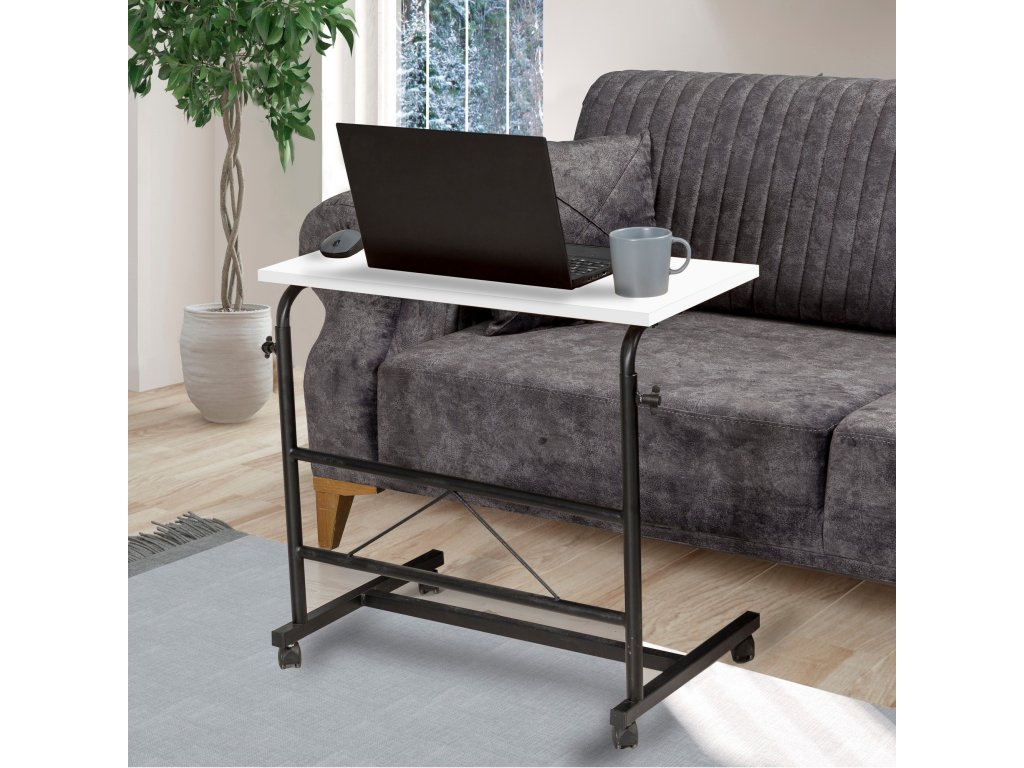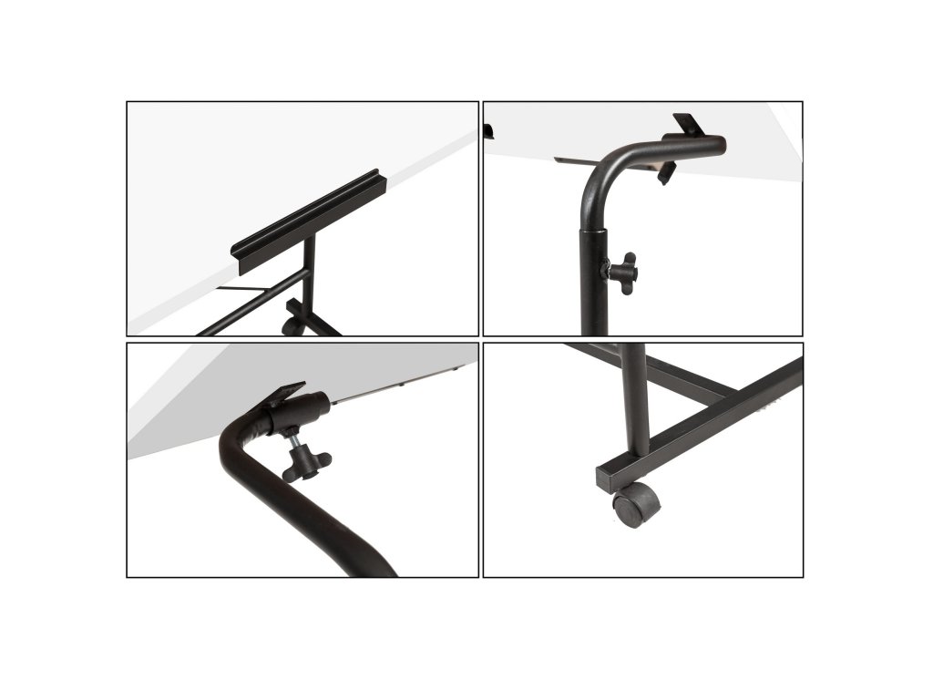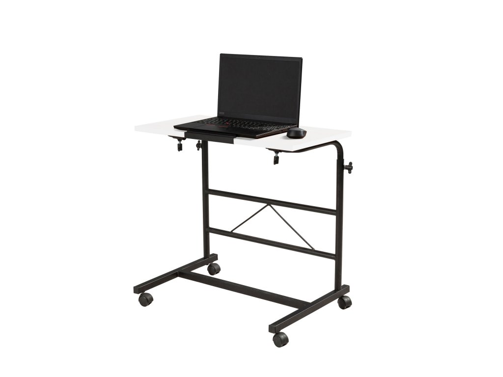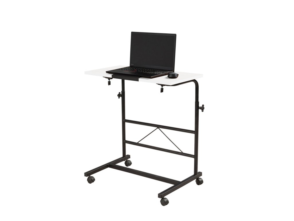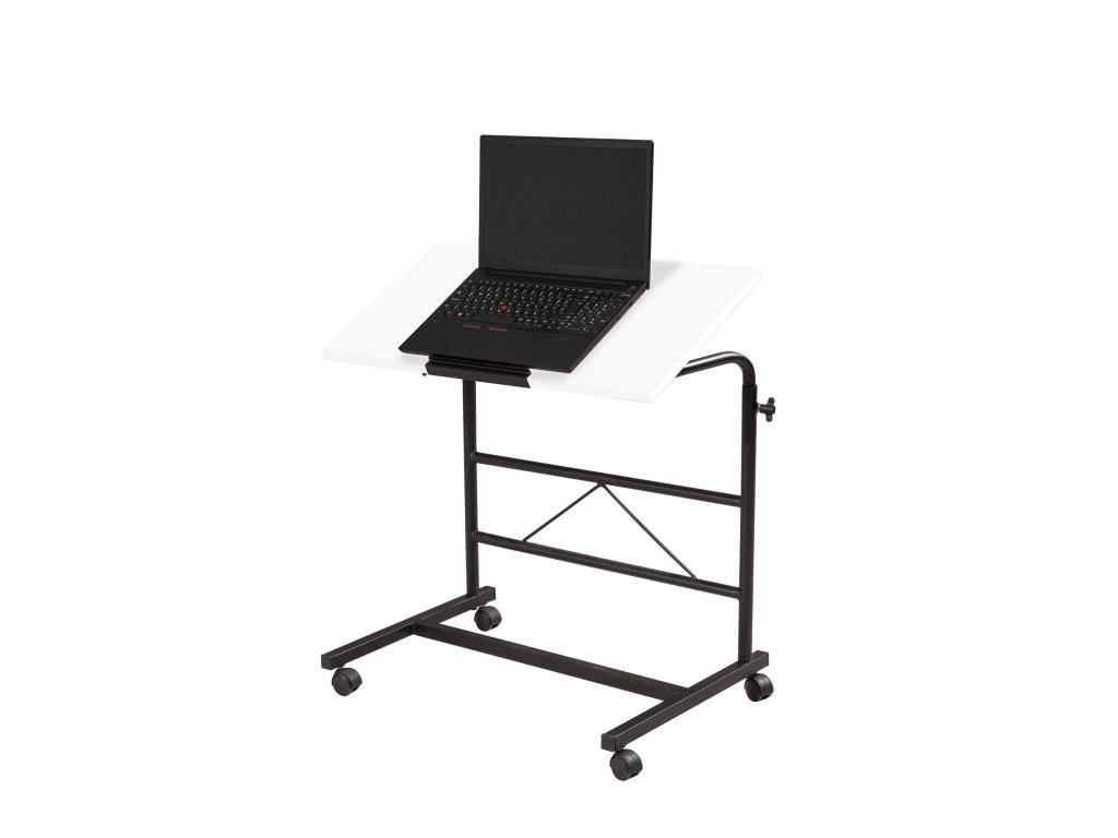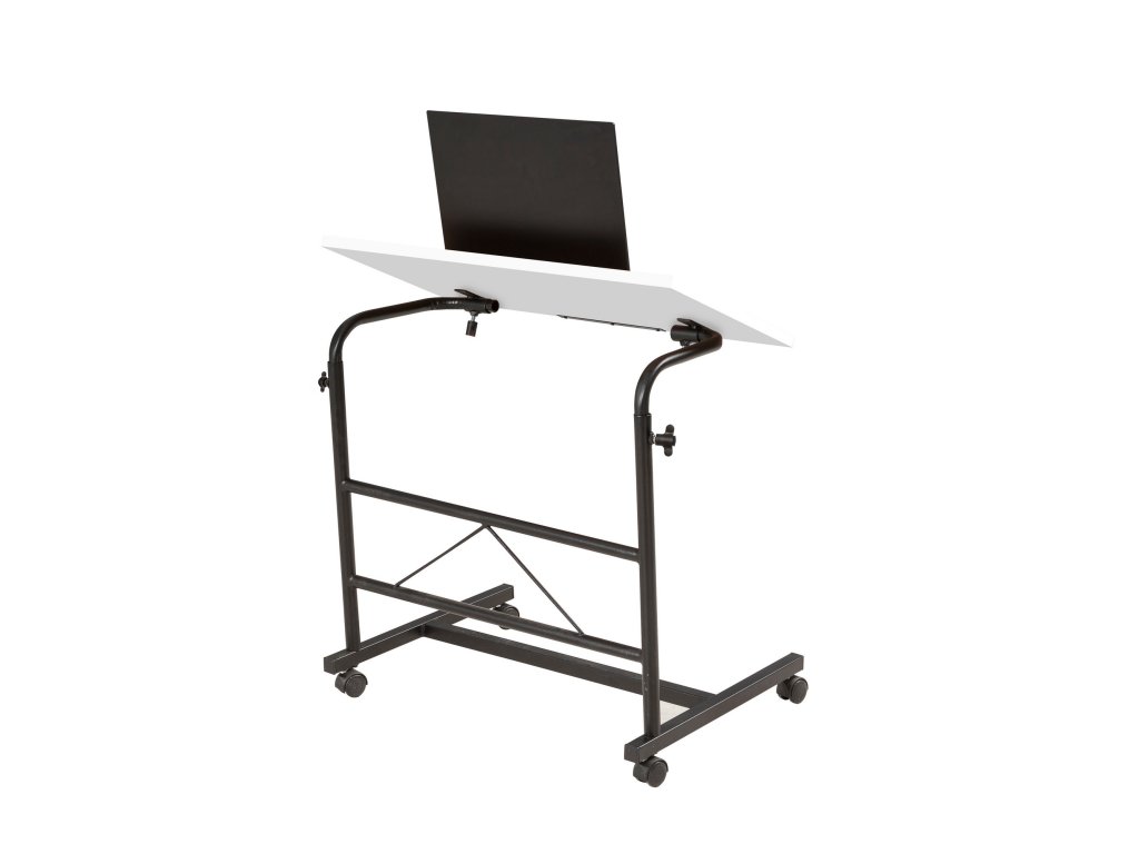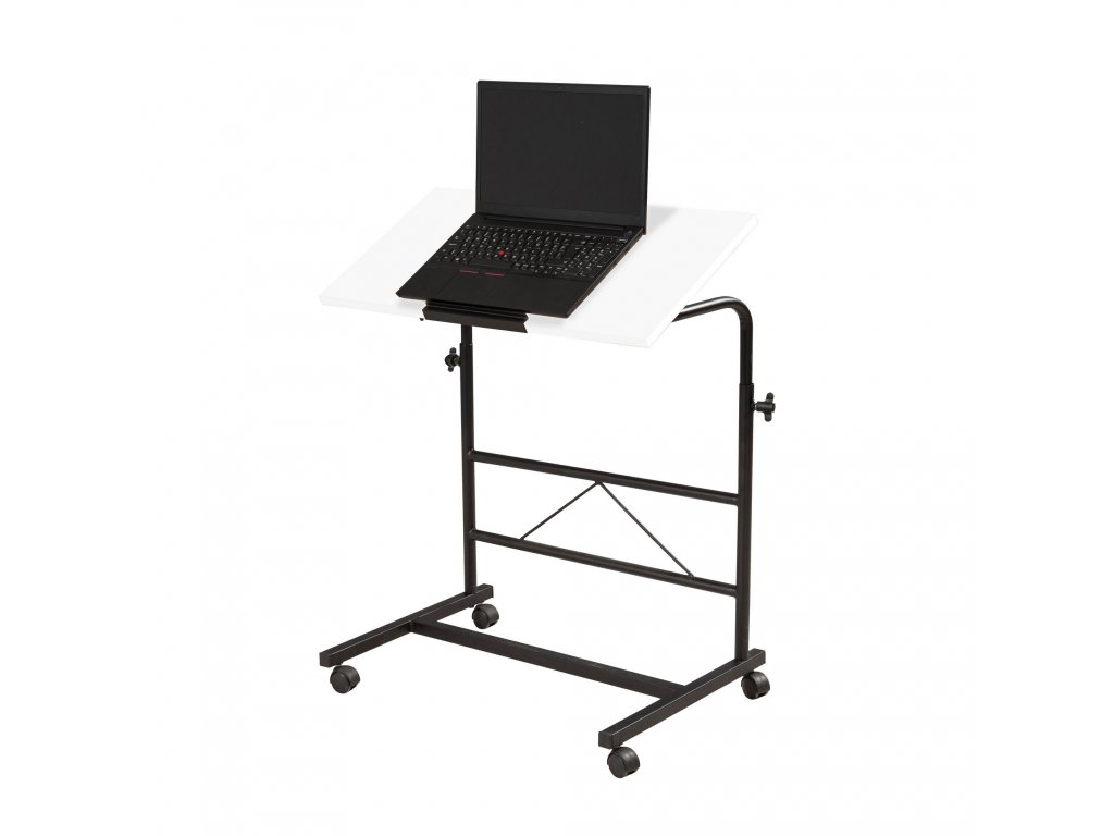 Černo-bílý polohovatelný stojan pod notebook ARIS potěší všechny ty z Vás, kdož pracujete na notebooku všude jinde než běžně za stolem.