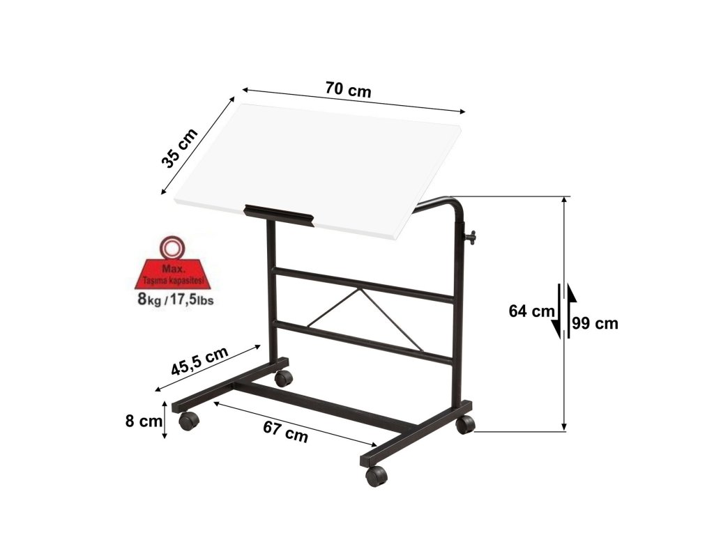 Rozměry: Šířka: 70 cm Hloubka: 45,5 cm Výška: 66–99 cm