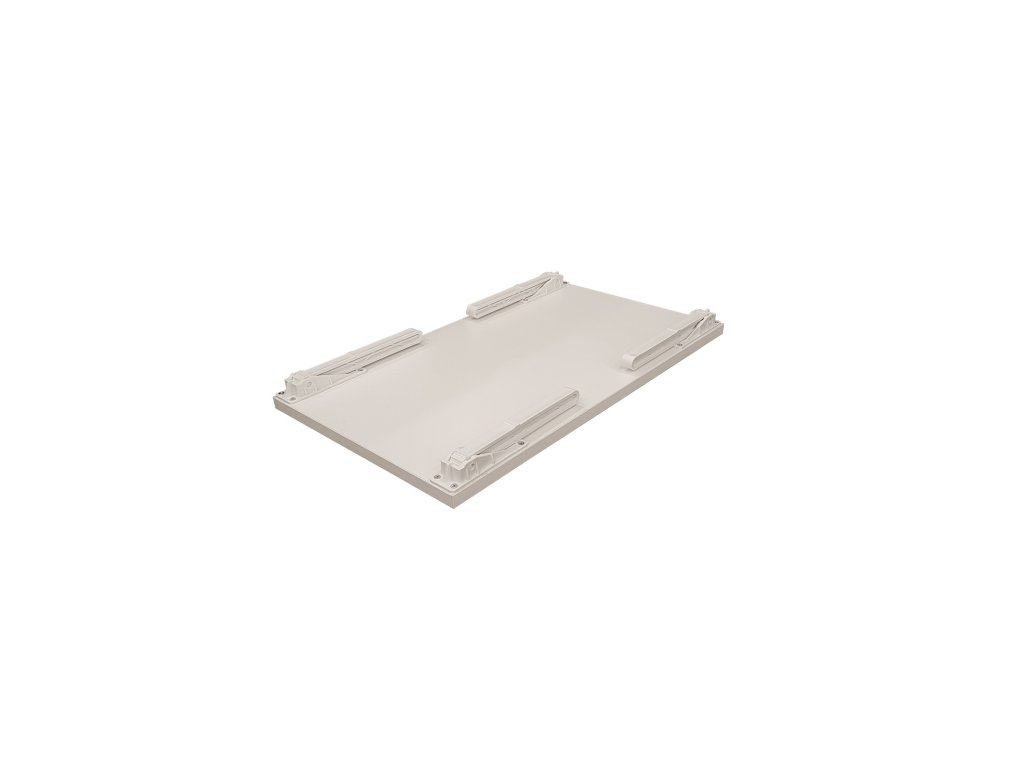 Je vyrobena z 18 mm silných desek pokrytých 100 % melaminem v bílé barvě.