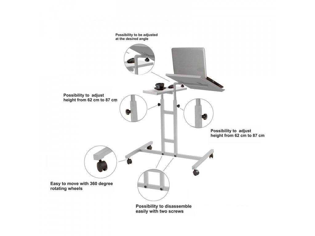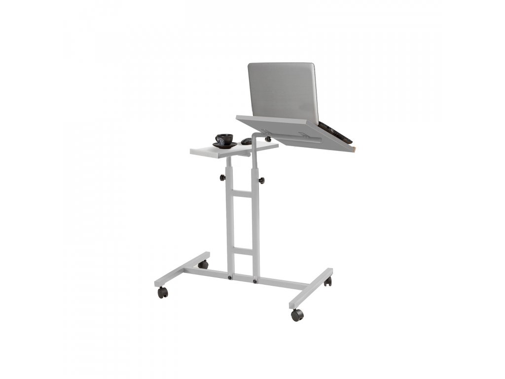 Praktický víceúčelový bílý stolek pod notebook GLEN je geniálním řešením pro práci vstoje, vsedě či vleže.