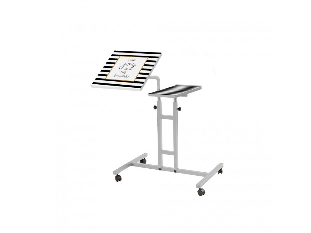Pojízdný víceúčelový GLEN je bílý polohovatelný a výškově nastavitelný stolek nejen pod notebook, ale i třeba na čtení knížek, nebo kreslení.