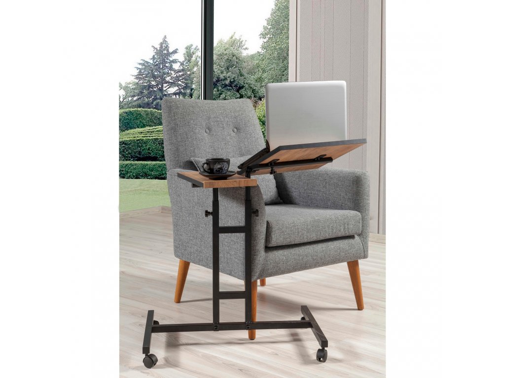 Víceúčelový polohovatelný stolek pro notebook je šikovný pomocník se dvěma polohovacími deskami s kovovou konstrukcí v barevném provedení dekor borovice