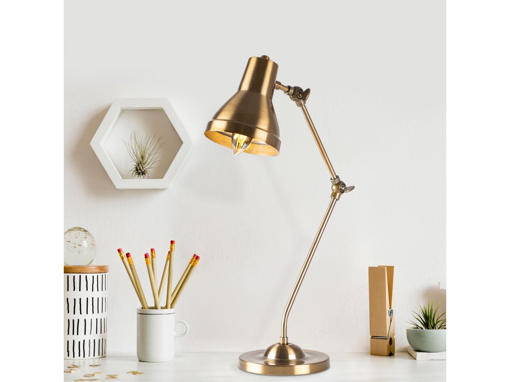 Stolní lampička MIXED je vyrobena z malé základny, z ramene, které může díky svým dvěma kloubům měnit pozici stínítka.