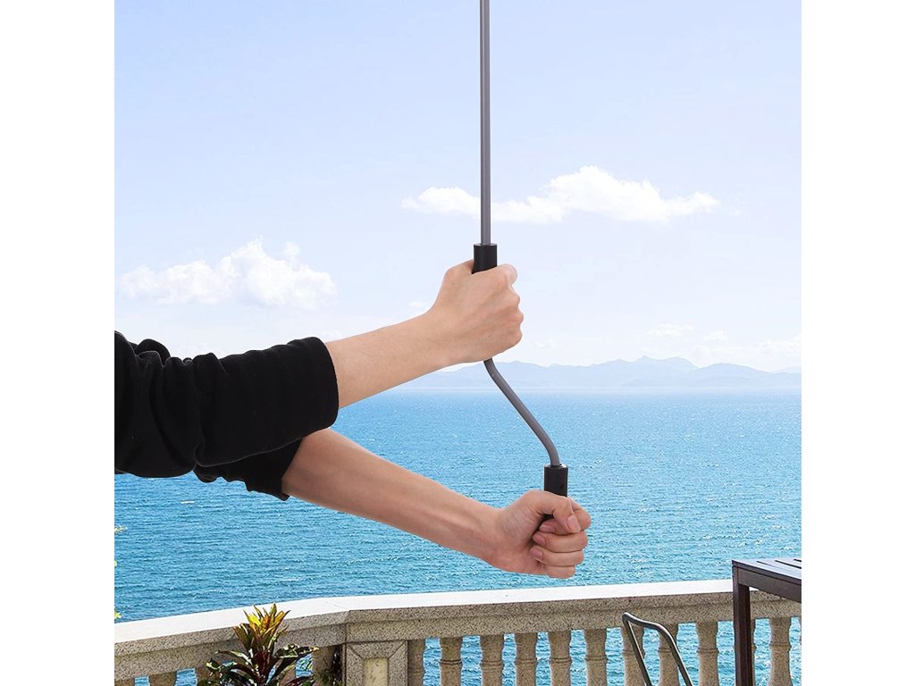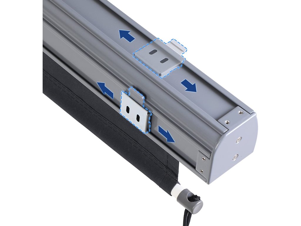 Markýza se snadno montuje na strop a lze ji kdykoli plynule nastavit na správnou délku. Markýzu lze prodloužit až na cca 2,40 m (max. délka: 250 cm s páskou, šířka 160 cm). Pomocí 2 gumových popruhů jednoduše připevníte spodní lištu markýzy pro lepší ochranu