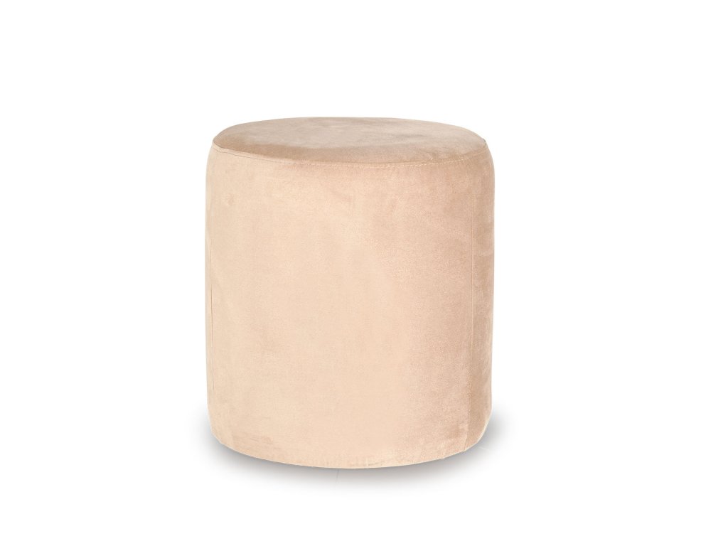 Taburet ADA má vnitřní habrovou konstrukci válcovitého tvaru, na které spočívá polstrovaný sedák potažený krémovým sametem.