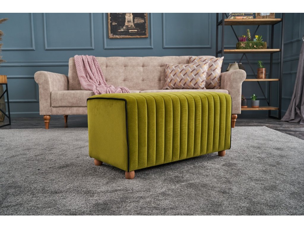 Prostorný taburet MABEL může sloužit jako dodatečné místo na sezení nebo jako pohodlná opěrka na nohy .