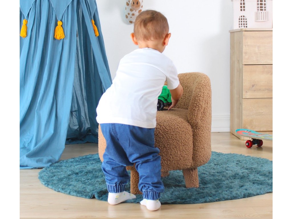 S průměrem 46 cm a výškou, 51 cm je ideálním doplňkem pro každý interiér a hnědé polstrování z umělé kožešiny mu navíc přidává jemný dotek přírody.
