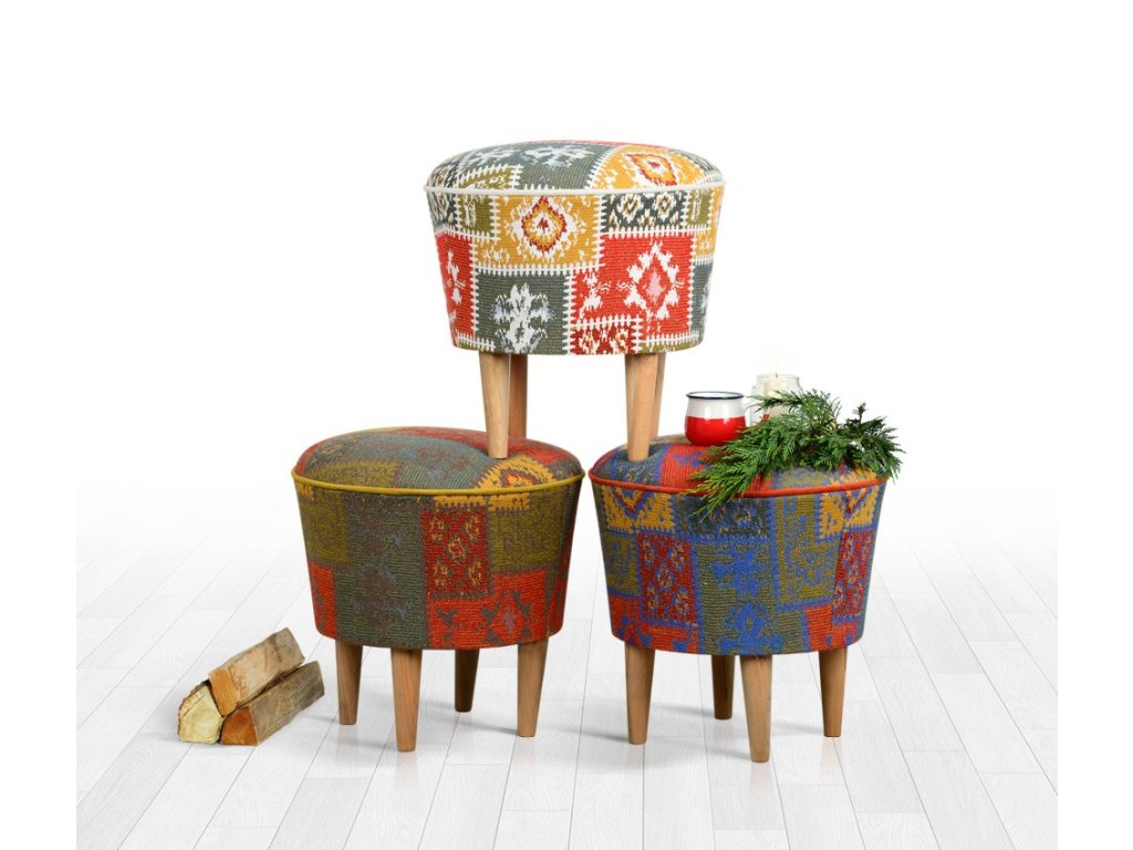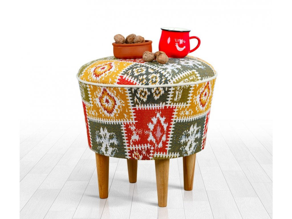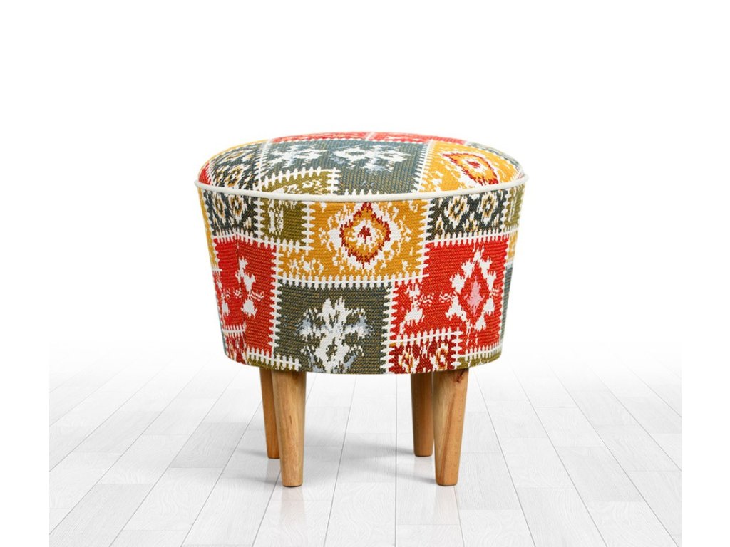 Kobercový taburet RUG má také dřevěné nohy, které jsou pevné a odolné. S výškou 42 cm a hloubkou 42 cm je ideální pro použití jako taburet nebo jako dekorativní kus nábytku, který je nejen stylový, ale také praktický a snadno se hodí do jakéhokoli interiéru.