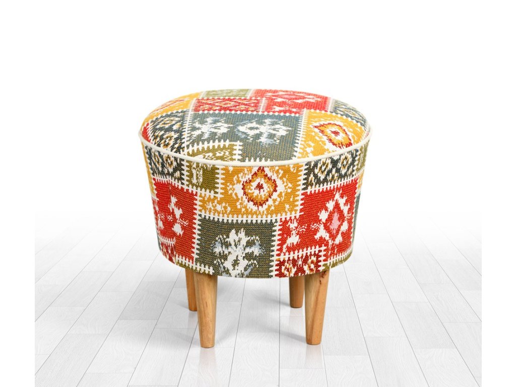 Taburet RUG s barevným kobercovým designem je perfektní doplněk pro váš domov. Tento taburet je vyroben z vysoce kvalitního materiálu, 100% polyesteru, který mu dodává moderní styl. 6 cm výška DNS ortopedické pěny zaručuje, že budete mít příjemný pocit na dotek a poskytuje podporu pro pohodlné sezení.