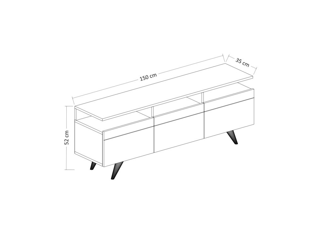 Rozměry TV stolku: Šířka: 150 cm Hloubka: 35 cm Výška: 52 cm