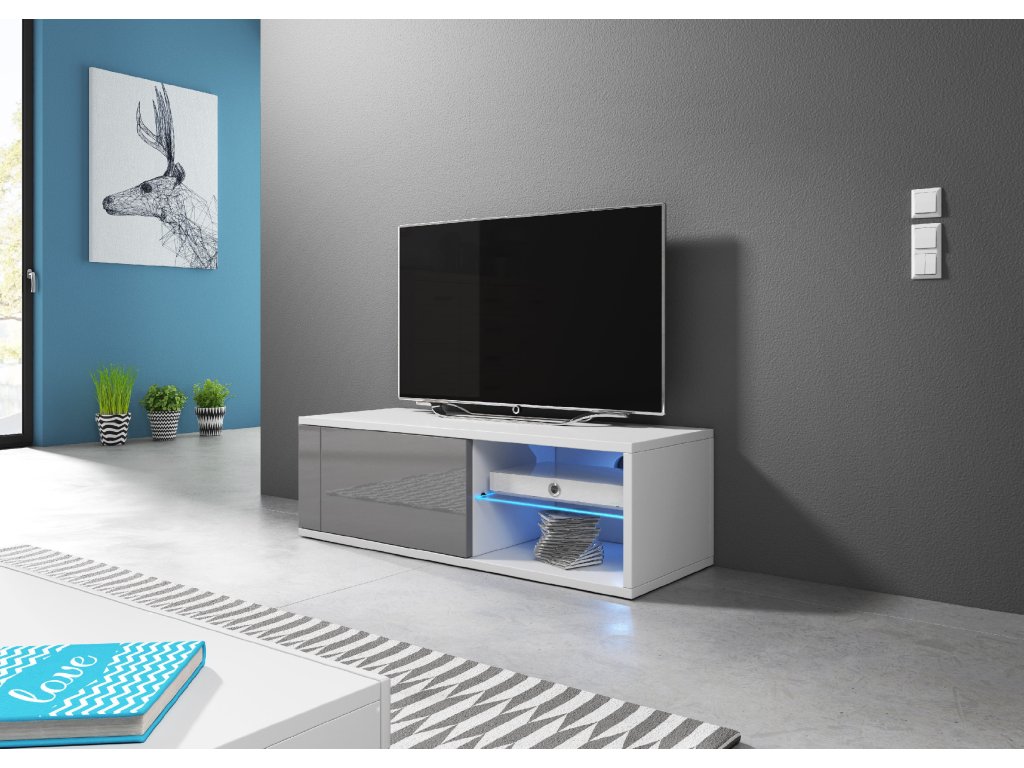 Televizní stolek BEST s LED osvětlením, bílý/šedý