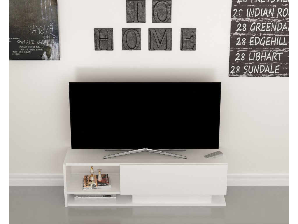 Tento televizní stolek má velmi jednoduché řešení, bílá barva se bude dobře kombinovat.