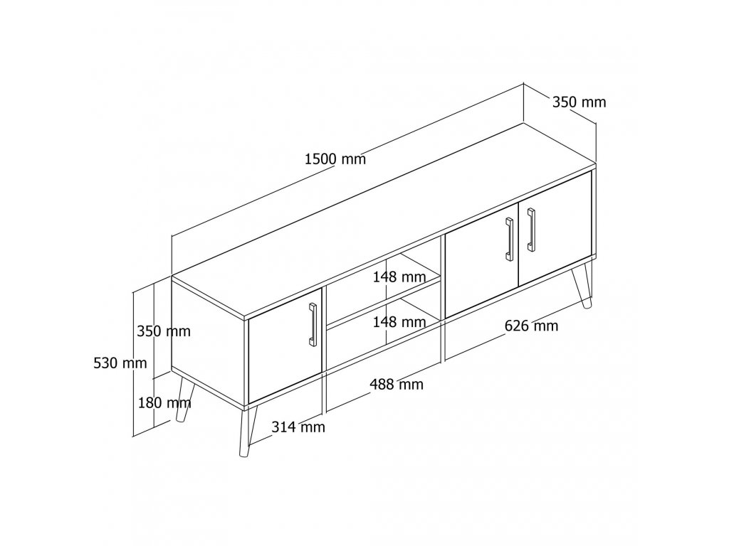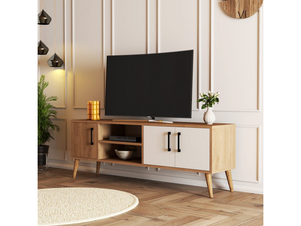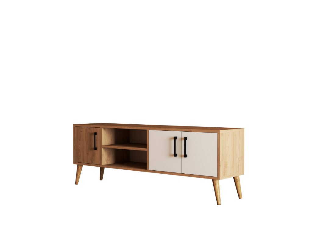 Jednoduchý televizní stolek na vyšších kónických nohách z kolekce EXXEN v provedení dub, bílá.