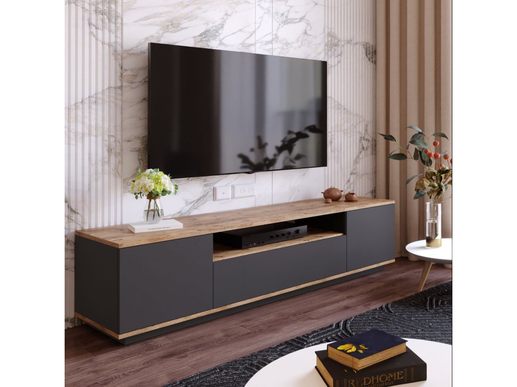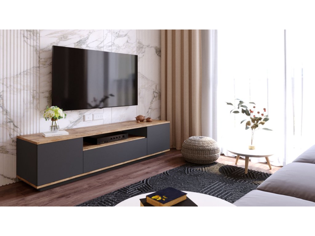Se svou šířkou 180 cm je praktický i pro opravdu velké televizní obrazovky a se spoustou úložného prostoru pomůže s uložením elektroniky a dalších drobností