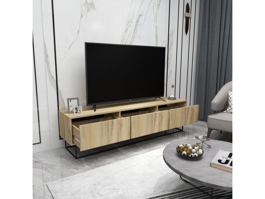 Televizní stolek KORDON je elegantně složen ze tří stejných zásuvek usazených společně na černé kovové konstrukci sloužící současně jako nohy stolu a může být doménou i doplňkem prakticky jakéhokoliv pokoje.