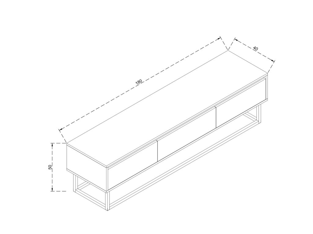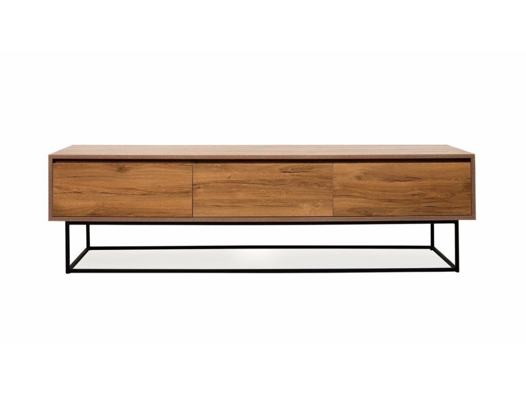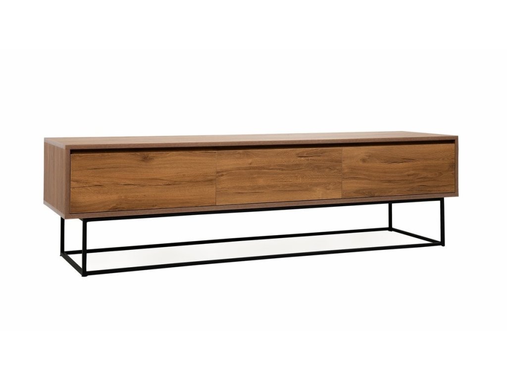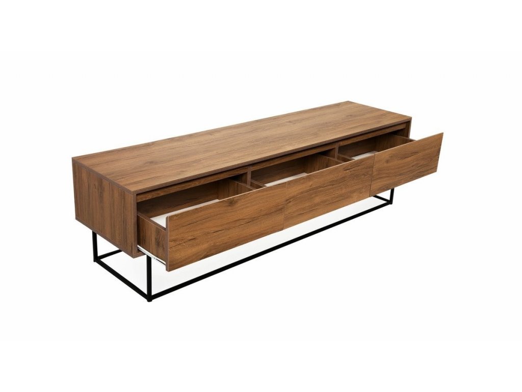 Široký televizní stolek, vhodný i pro velkou televizi. Tři velké zásuvky pro uložení všech potřebných nezbytností.