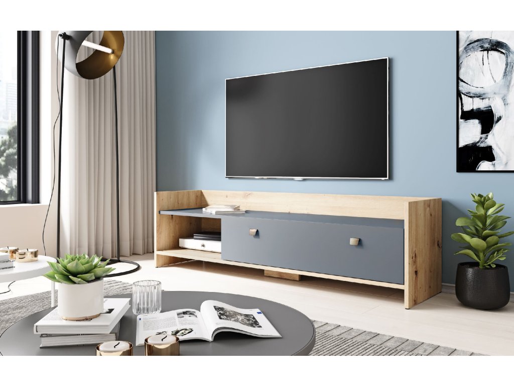 Televizní stolek OPEN 140, dub artisan/grafit