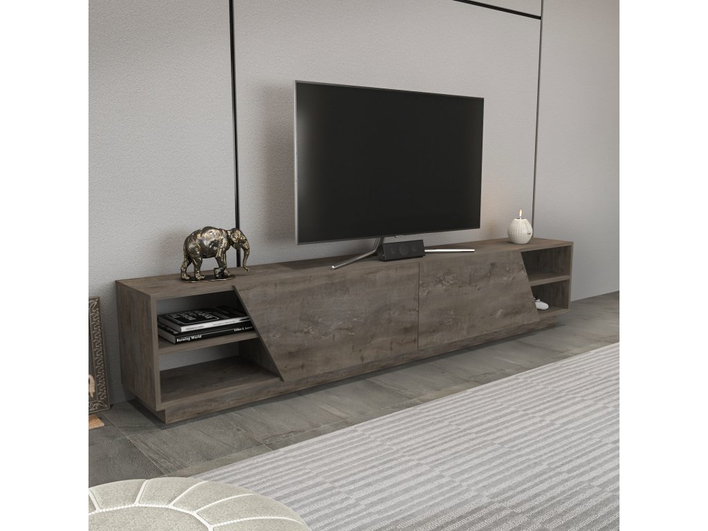 Dvířka obou skříněk jsou zkosená a společně s použitým dekorem dodávají televiznímu stolku RHODES moderní vzhled.