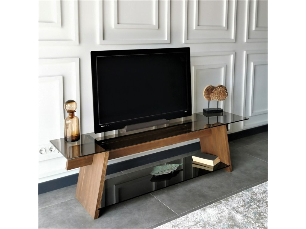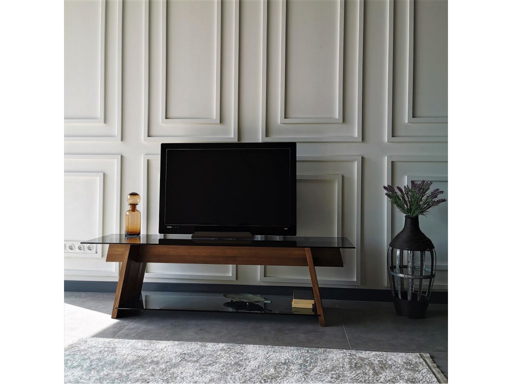Pokud máte rádi sklo, je televizní stolek TV201 v dekoru ořech s černým sklem stvořený právě pro Vás.