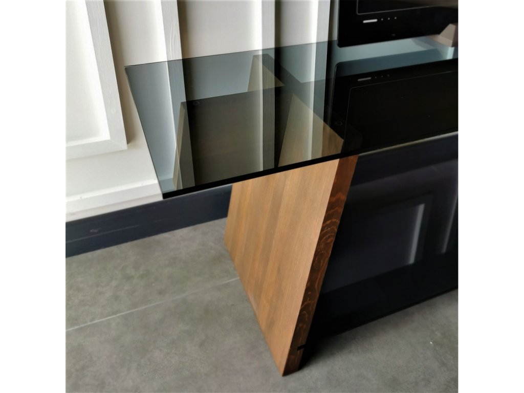 Tělo je vyrobeno z masivního borovicového dřeva v dekoru ořech a z černého tvrzeného skla o síle 8 mm.