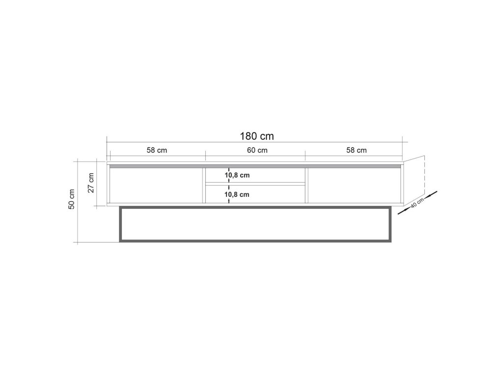 Celkové rozměry: Šířka: 180 cm Hloubka: 40 cm Výška: 50 cm